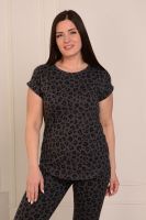 Футболка прямого силуэта с леопардовым принтом. Горловина круглая, рукав цельнокроеный с отворотами по низу. Удобная, практичная, лёгкая, не стесняет движения. Обратите внимание на модель 11693 - эти бриджи выполнены из такого же материала. У вас может получиться отличный комплект.