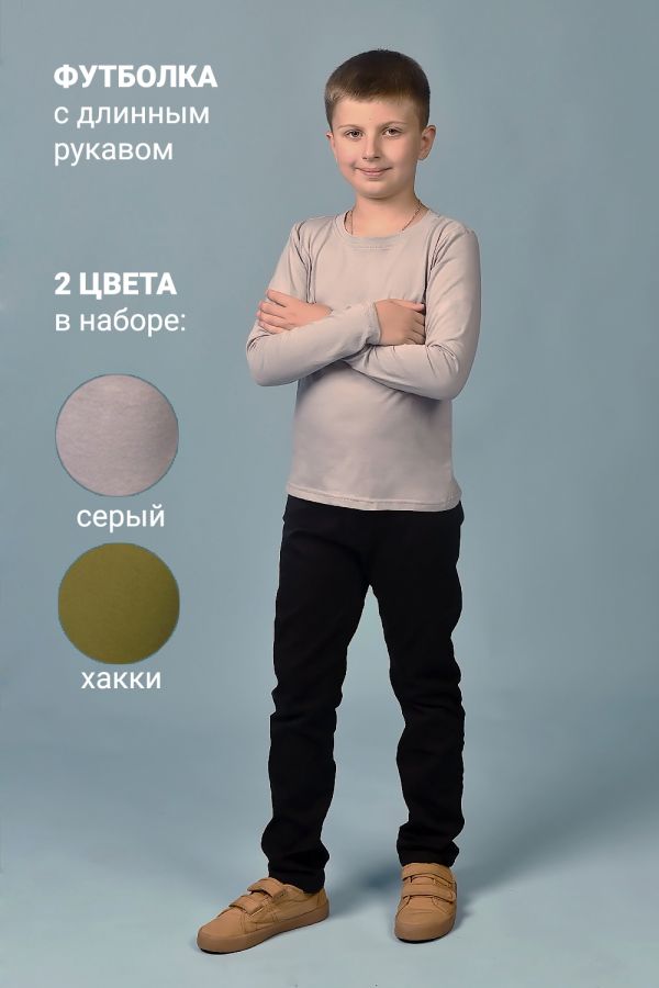 Футболка с длинным рукавом для мальчиков однотонная из 100% хлопка. Комплект из 2 штук. Классическая базовая футболка для детей сделана из легкой дышащей ткани. Детская футболка с длинным рукавом без рисунка предназначена как для повседневной носки, так и для использования в детских садах и школах на уроках физкультуры. Базовая футболка с длинным рукавом для детей имеет прямой крой и округлый вырез горловины. Эта домашняя детская футболка имеет отличное сочетание стоимости и качества. Хлопковая футболка с длинным рукавом для детей станет отличной базовой вещью на каждый день и на любой сезон. Однотонная детская футболка может идеально сочетаться, как и с джинсами, так и со спортивными брюками.