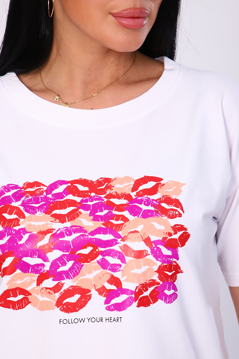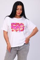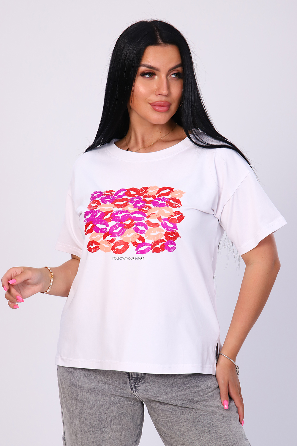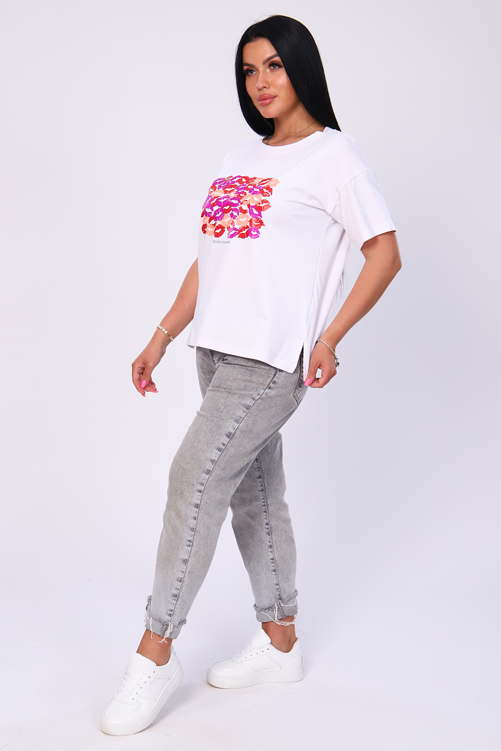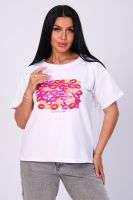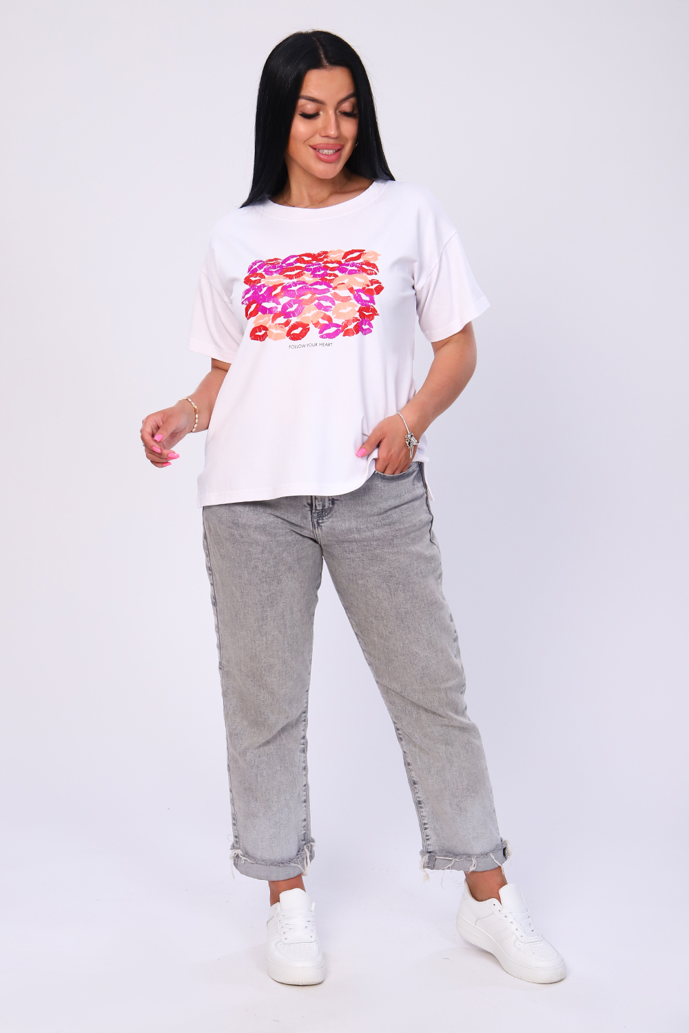Женская футболка принт "губы" модель в стиле oversize, со спущенным плечом. Отлично смотрится на разных типах фигур. Футболка оверсайз идеально подходит для создания непринужденного образа. Модель выполнена из хлопка с добавлением лайкры высокого качества. Подходит для занятий спортом, для дома, а также как подарок на праздник, день рождения, юбилей, 8 марта, новый год. Принт сохраняется после множества стирок, ткань приятна к телу.