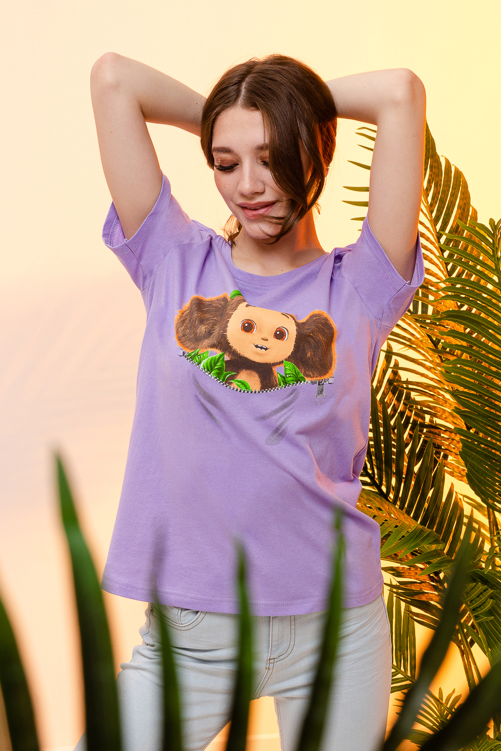 Женская футболка с принтом Чебурашка в кармашке выполнена из 100% натурального хлопка. Качественная и стильная футболка. Футболка прямого кроя с оптимальной плотностью на любой сезон. Хорошо сидит на фигуре, комбинируются с любой повседневной одеждой. Подходит для занятий спортом, для дома, а также как подарок на праздник, день рождения, юбилей, 8 марта, новый год. Принт сохраняется после множества стирок, ткань приятна к телу.
