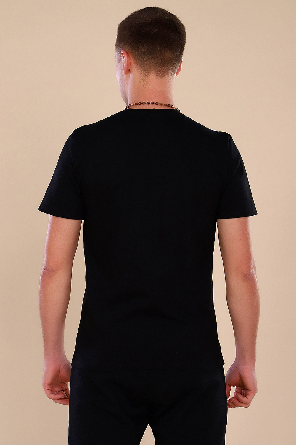 Футболка мужская комбинированная с коротким со втачным рукавом. Данная модель выполнена из трикотажного полотна (кулирка 100% хлопок с плотностью 180гр.). Горловина обработана трикотажным эластичным полотном (рибана с лайкрой). На полочке присутствует отрезная вставка и вышивка с символикой вашего любимого спорта (футбол). Отлично подходит для прогулок и отдыха и спорта.