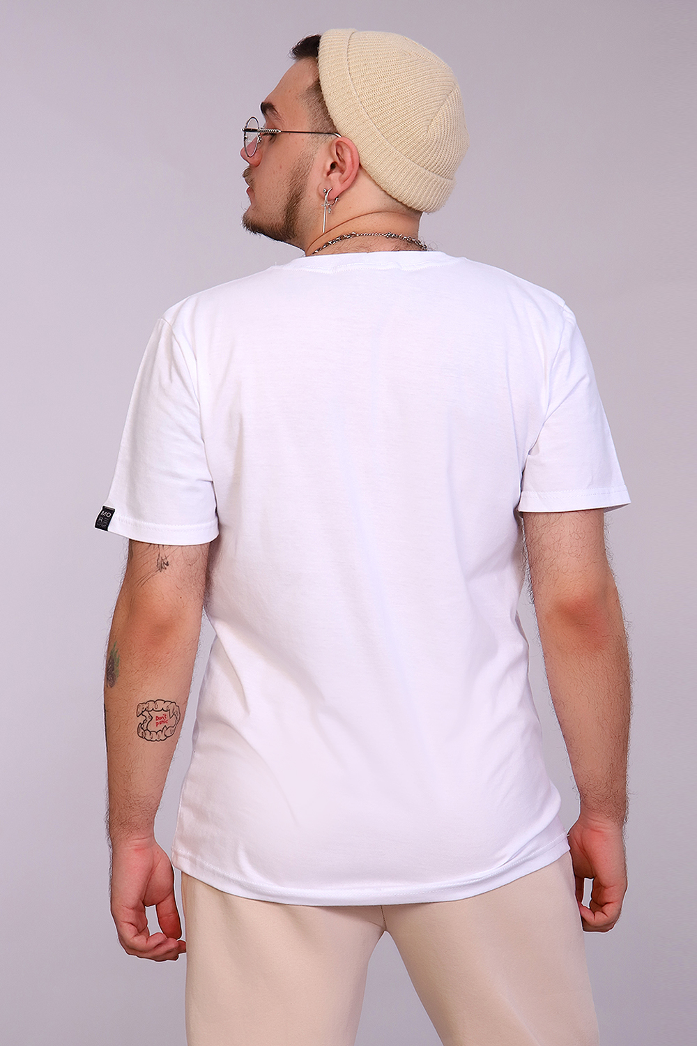 Футболка мужская с коротким рукавом. Данная модель выполнена из трикотажного полотна (кулирка). На полочке присутствует принт. Горловина обработана из эластичного трикотажного полотна (рибана). Отлично подходит для прогулок.