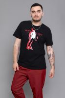 Футболка мужская с коротким рукавом. Данная модель выполнена из трикотажного полотна (кулирка). На полочке присутствует принт. Горловина обработана из эластичного трикотажного полотна (рибана). Отлично подходит для прогулок.