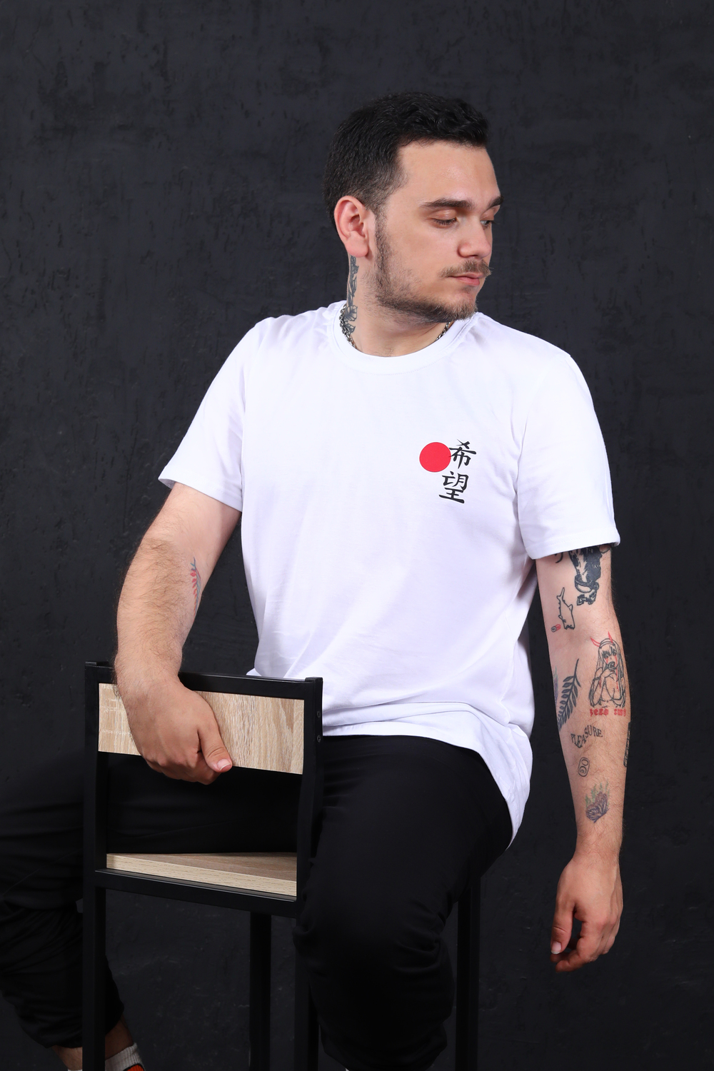 Футболка мужская с коротким рукавом. Данная модель выполнена из трикотажного полотна (кулирка). На полочке и спинке присутствует принт. Горловина обработана из эластичного трикотажного полотна (рибана). Отлично подходит для прогулок.