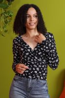 Футболка женская на запах с длинным рукавом. Данная модель выполнена из эластичного трикотажного полотна вискоза. По низу изделия пришит широкий манжет, который подчеркивает талию. Отличная молодежная модель для повседневной носки.