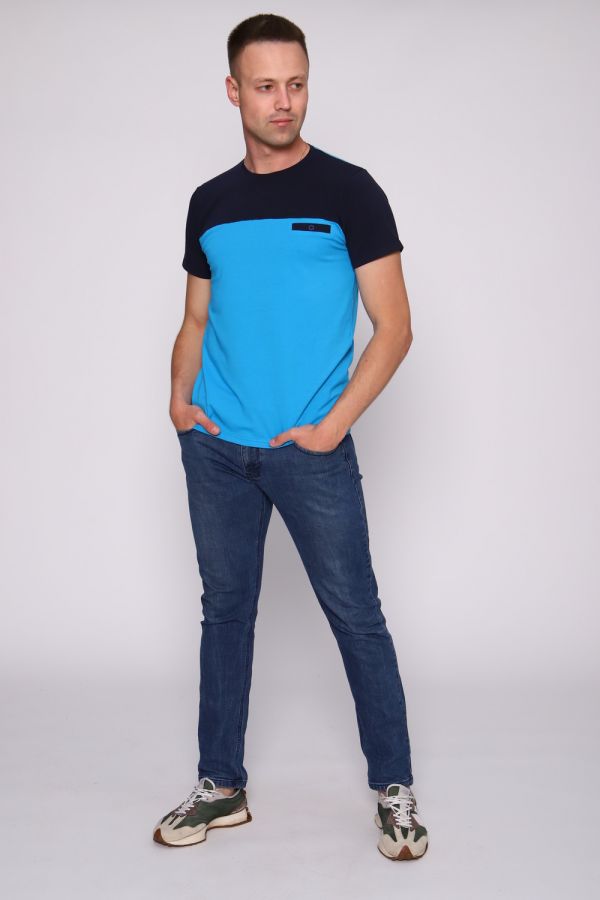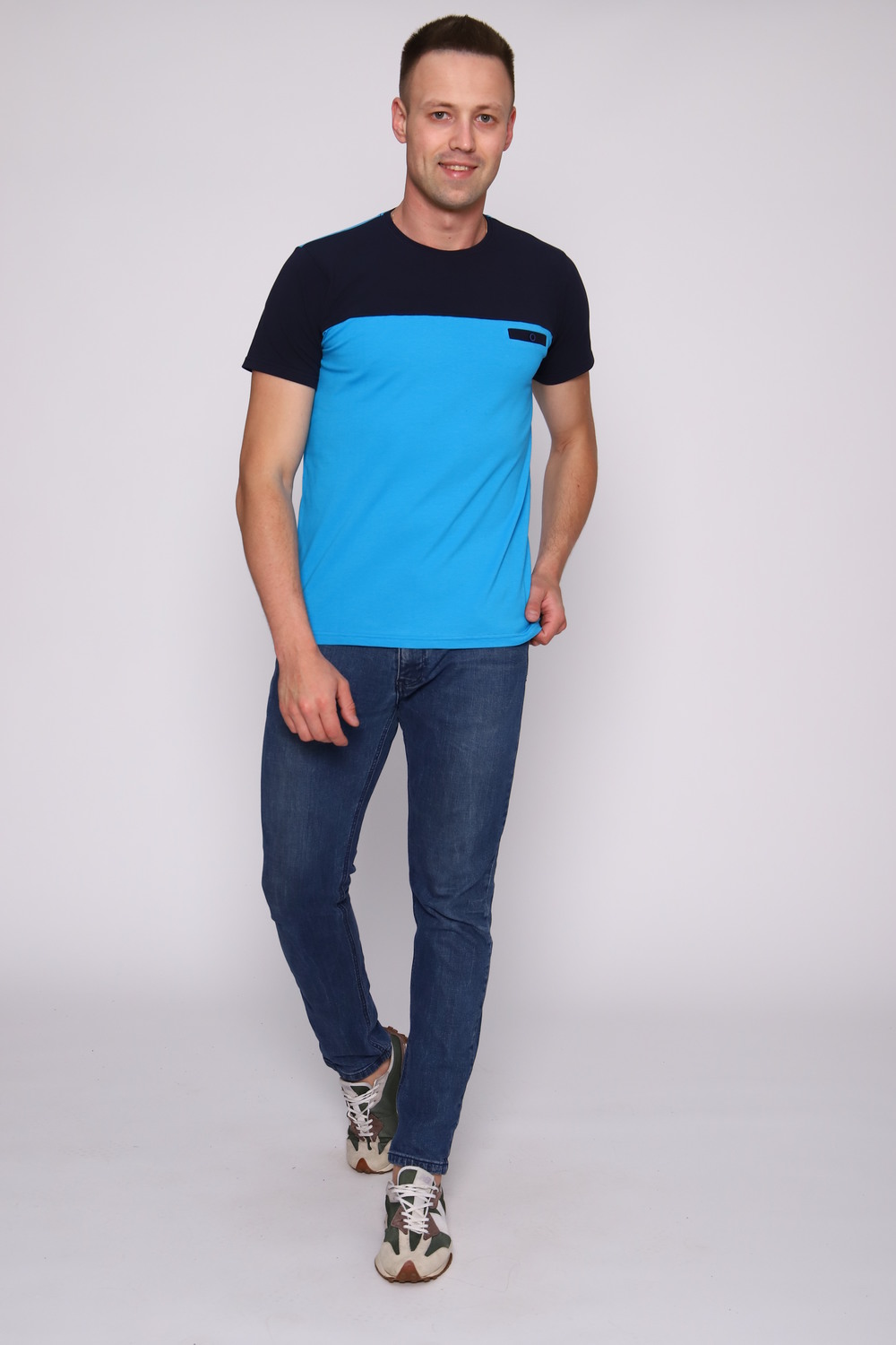 Стильная футболка с круглым воротником из тонкой износостойкой ткани кулирка с лайкрой - идеальный вариант для жаркой погоды. Стильная модель с карманом-обманкой. Простая базовая футболка придает стиль с помощью двух цветовых блоков. Приятный к телу трикотаж не скатывается и не даёт усадку. Параметры модели на фото (ОГ-ОТ-ОБ): 103-89-106; рост 180 см, размер 52.