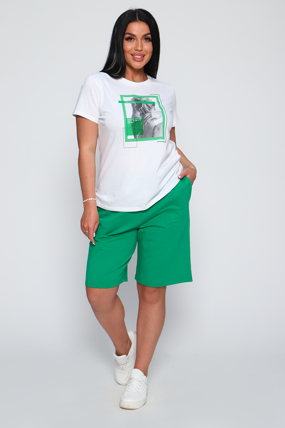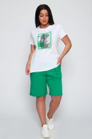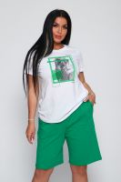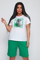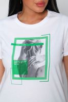 Футболка женская из кулирной глади. На полочке расположена печать. Рукав втачной.