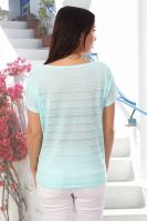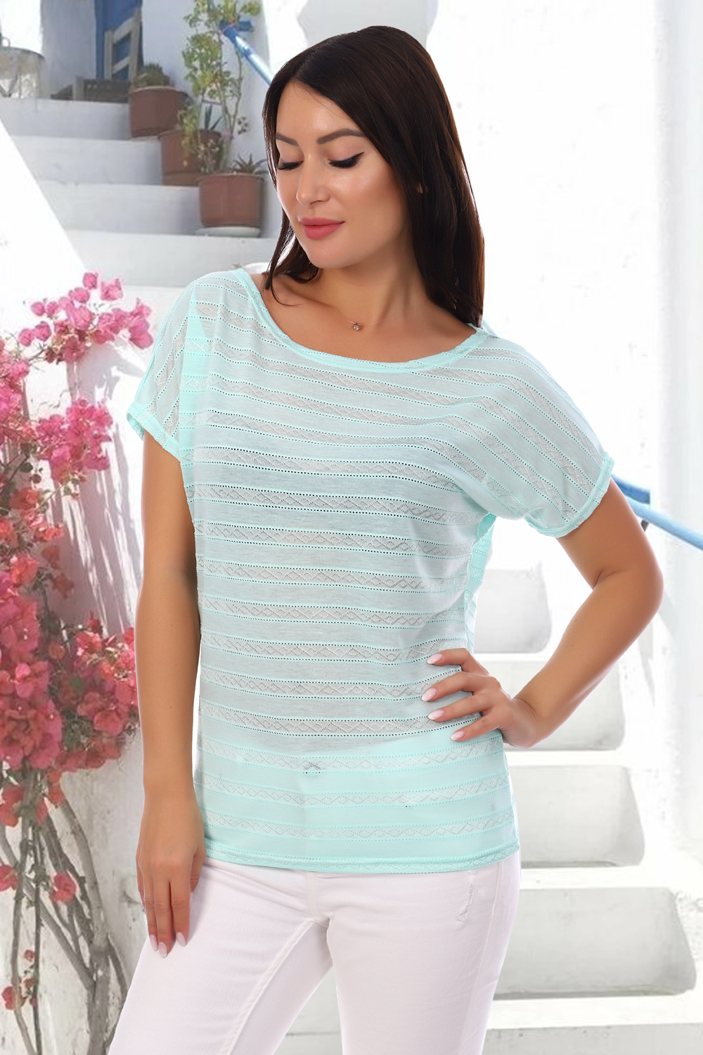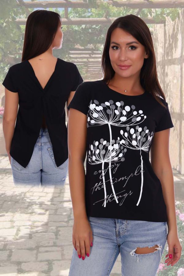 Футболка женская из лёгкого, приятного к телу трикотажного шитья. Футболка свободного покроя, горловина в виде "лодочки", спущенная пройма. Модель хорошо будет смотреться в комплекте с джинсами, брюками, а также с любой юбкой.