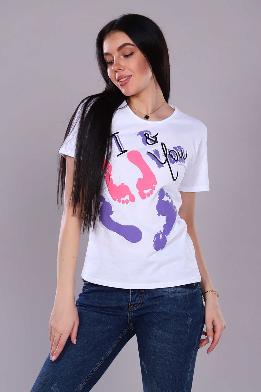 Футболка с молодёжным принтом, слегка приталенного силуэта, круглая горловина, короткий рукав. Это необходимая, удобная вещь в гардеробе любой модницы не зависимо от возраста и фигуры. Футболка с таким принтом отличный подарок в ДЕНЬ ВЛЮБЛЁННЫХ.