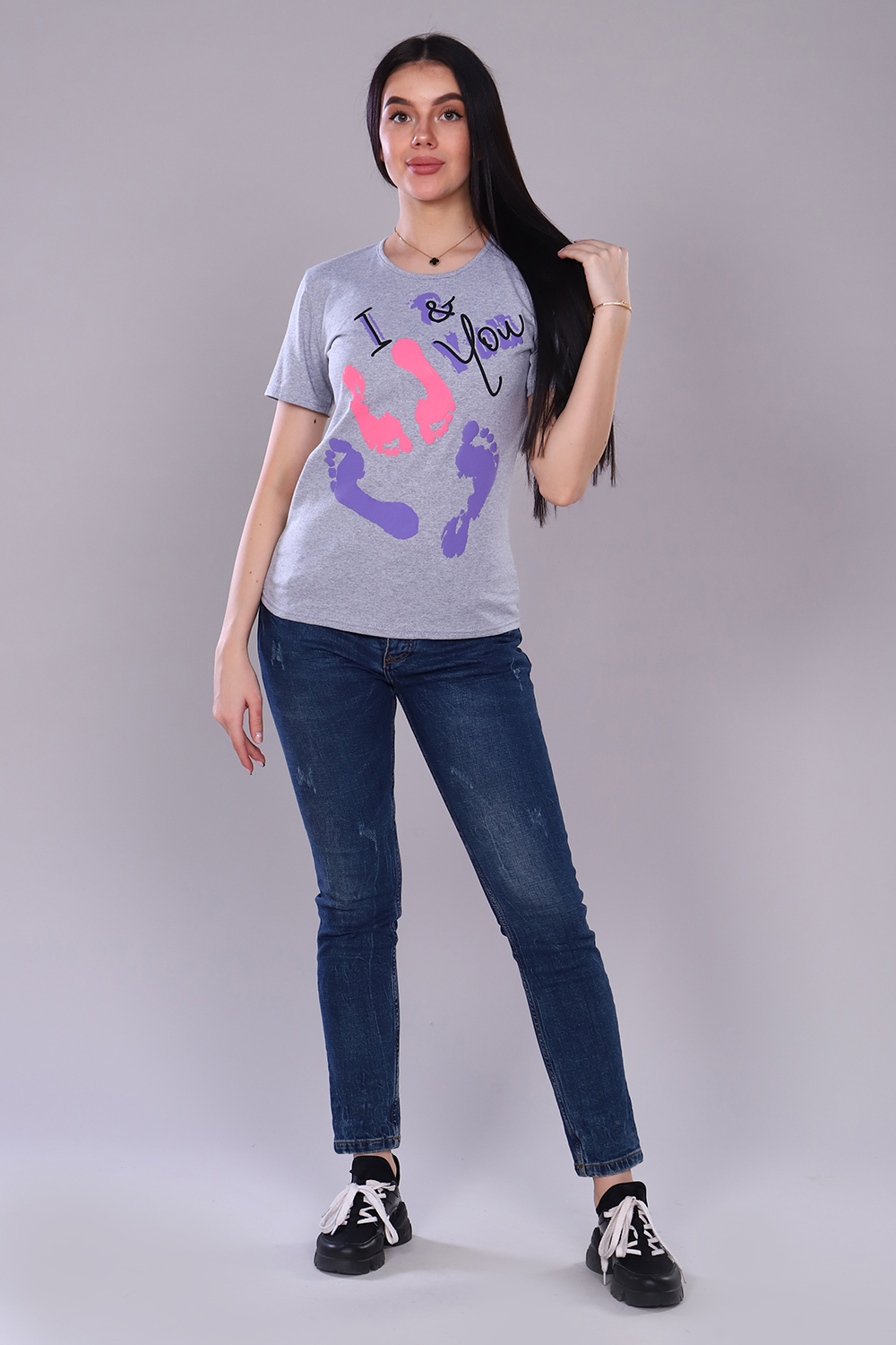 Футболка с молодёжным принтом, слегка приталенного силуэта, круглая горловина, короткий рукав. Это необходимая, удобная вещь в гардеробе любой модницы не зависимо от возраста и фигуры. Футболка с таким принтом отличный подарок в ДЕНЬ ВЛЮБЛЁННЫХ.