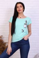 Футболка с молодёжным принтом из кулирки с лайкрой качества пенье. Модель слегка приталенного силуэта, горловина в виде лодочки, спущенная пройма, спинка слегка удлинена. Футболка - это базовая комфортная вещь женского гардероба, её надевают в спортзал, в офис и даже на вечеринку.