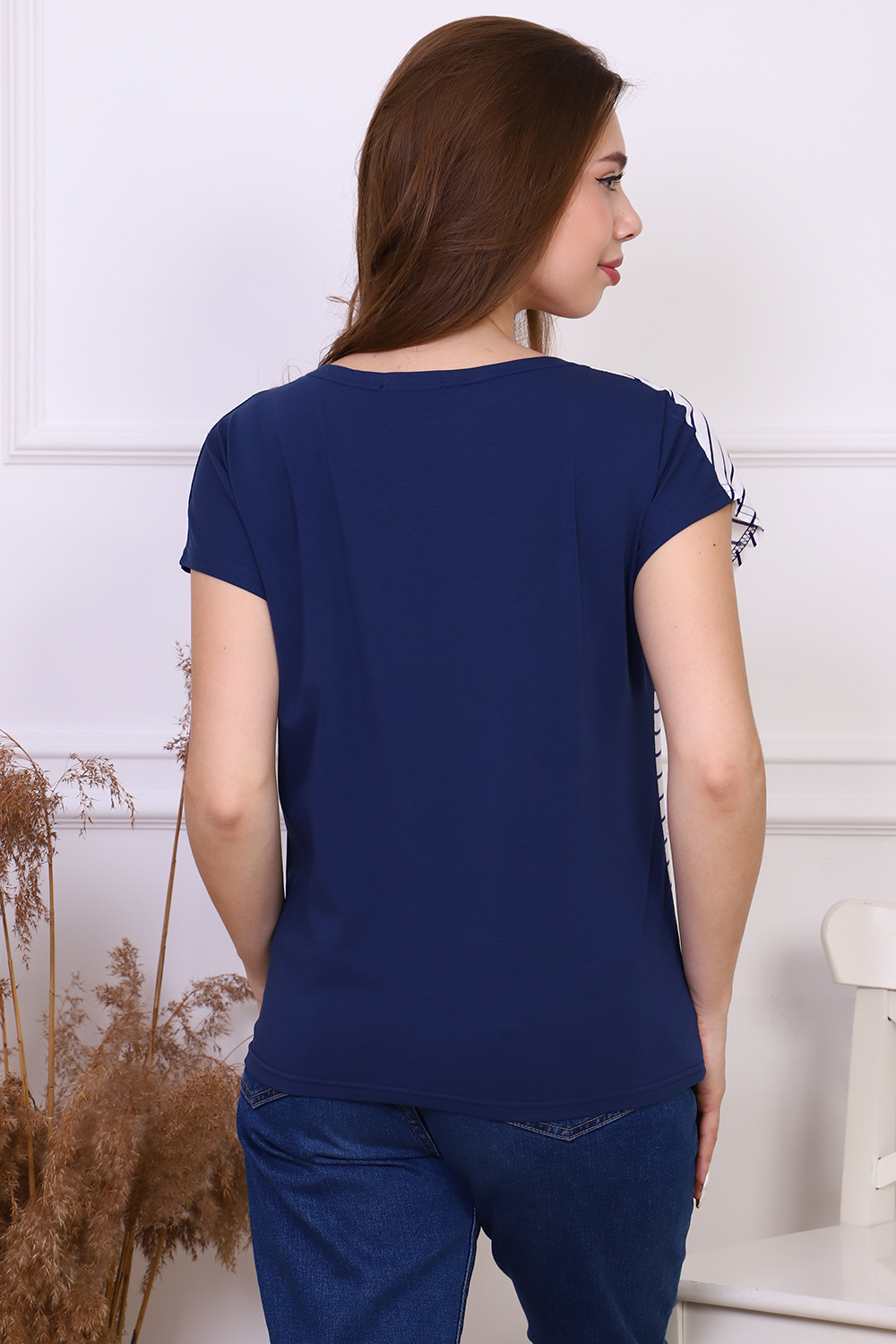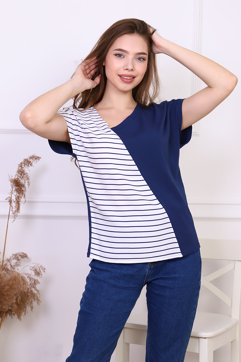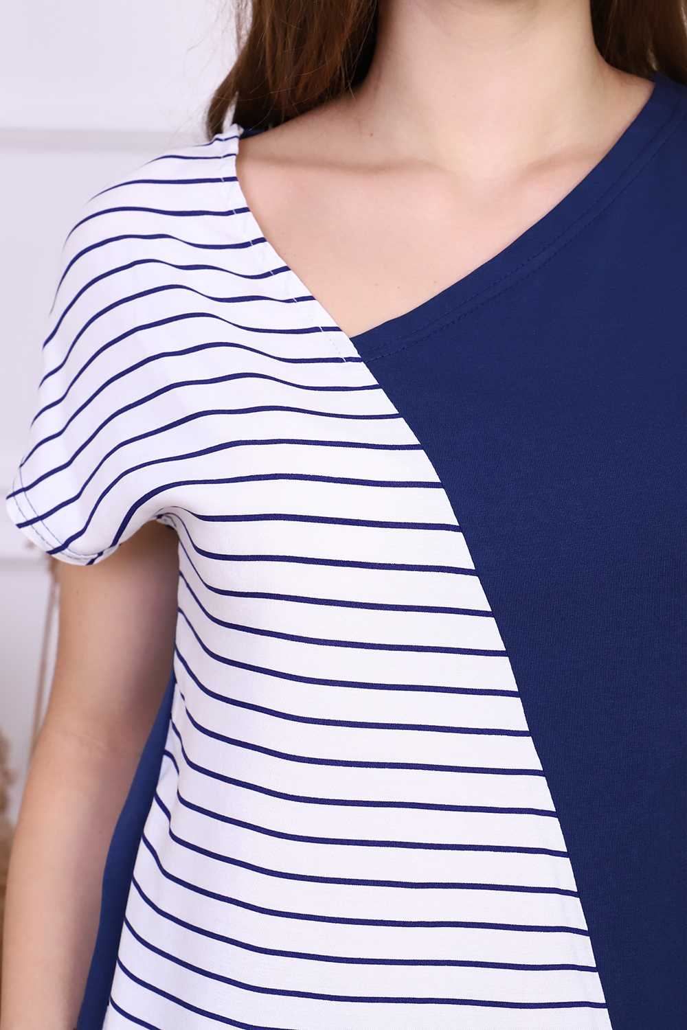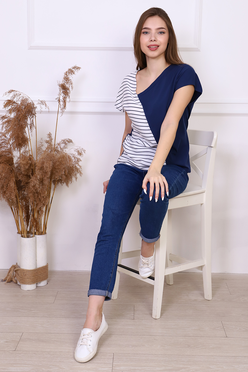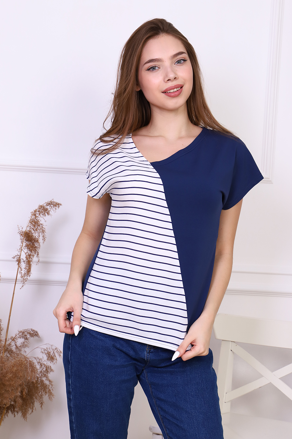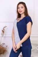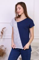 Стильная, лёгкая, приятная к телу футболка из комбинированных тканей - штапеля и кулирки с лайкрой качества пенье. Модель свободного покроя, асимметричный фигурный вырез горловины, спущенная пройма. Футболка - это базовая комфортная вещь женского гардероба. Этот предмет одежды может легко вписаться в любой стиль современной модницы.