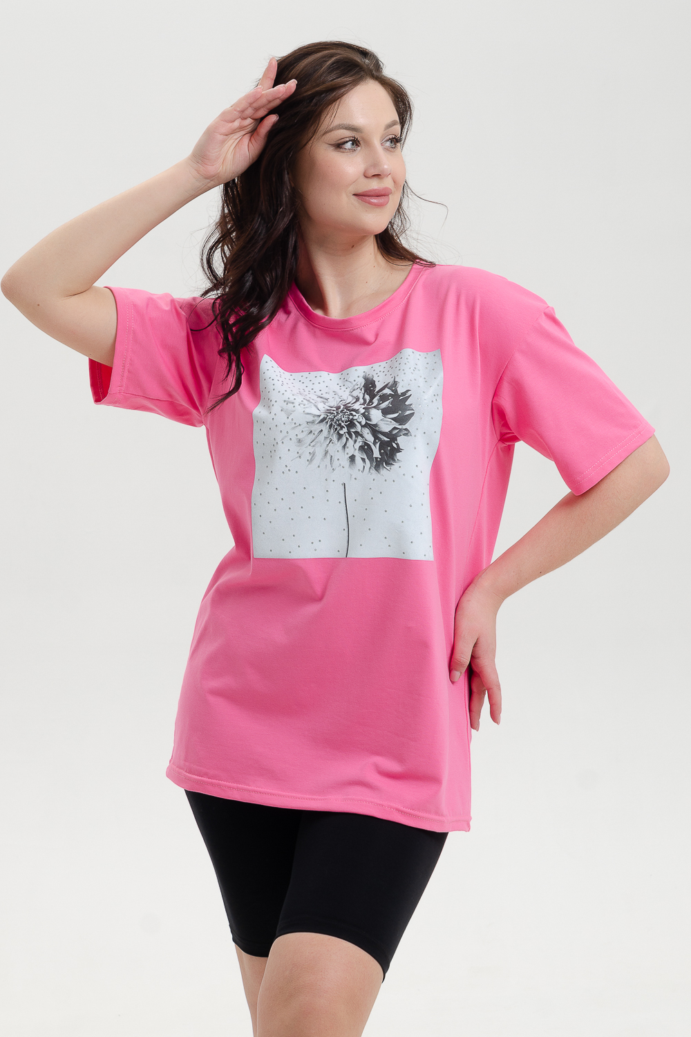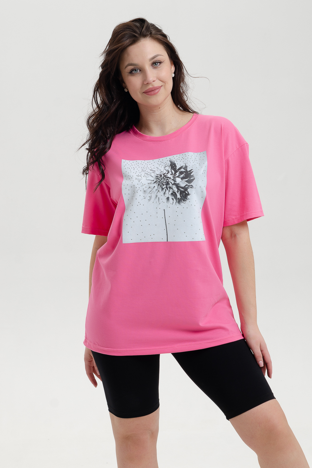 Футболка женская из кулирки с лайкрой качества пенье в большой цветовой гамме. Футболка свободного кроя, со спущенной линией плеча. Идеально подойдет для дома, прогулок и отдыха.