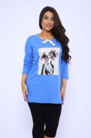 Футболка женская удлиненная прямого силуэта из кулирки 100% хлопок качества пенье. Спереди оригинальный принт, рукав спущенный 3/4, горловина обработана обтачкой, затягивается шнурком. Футболка идеально подойдет как для дома, так и для прогулок и отдыха.