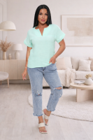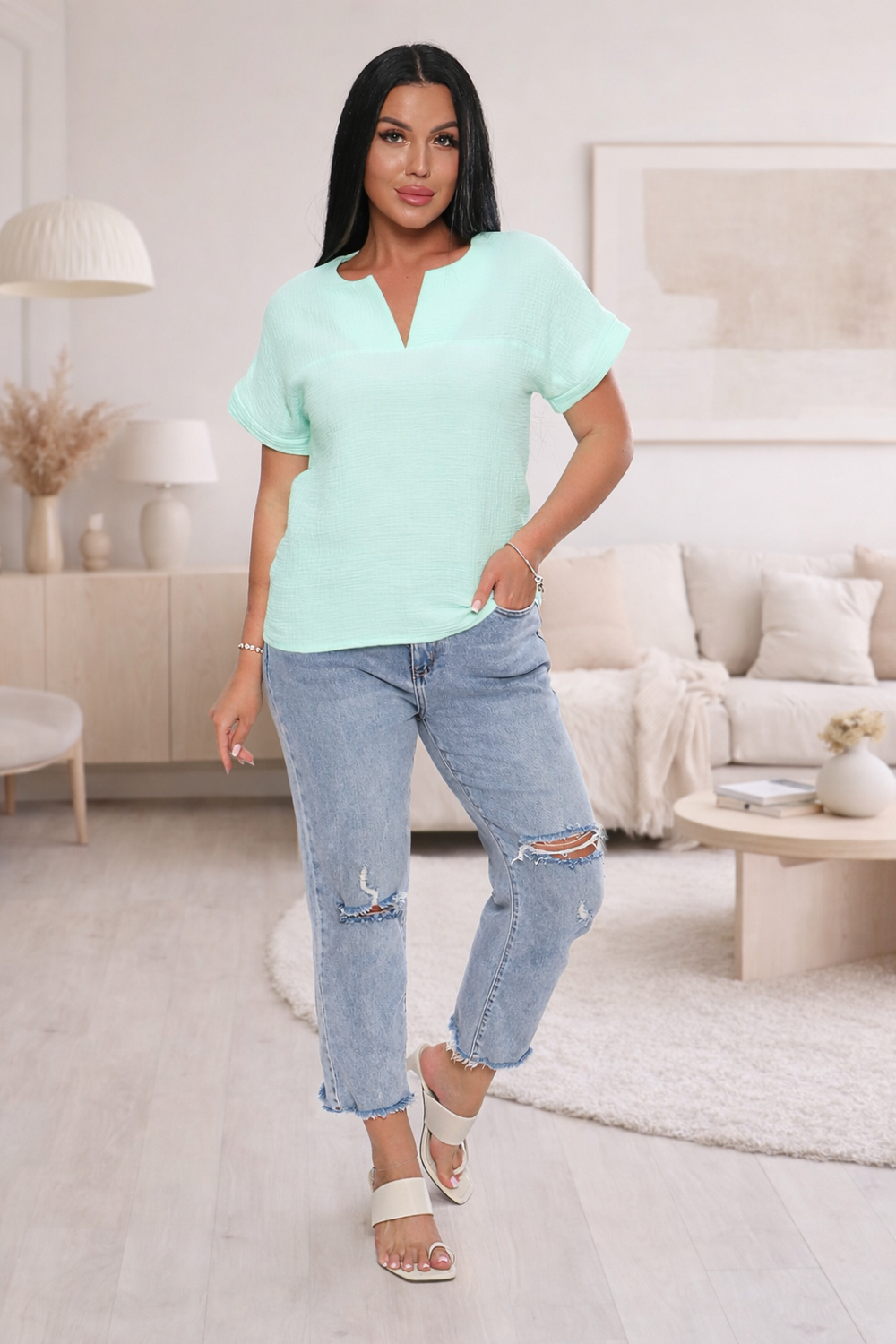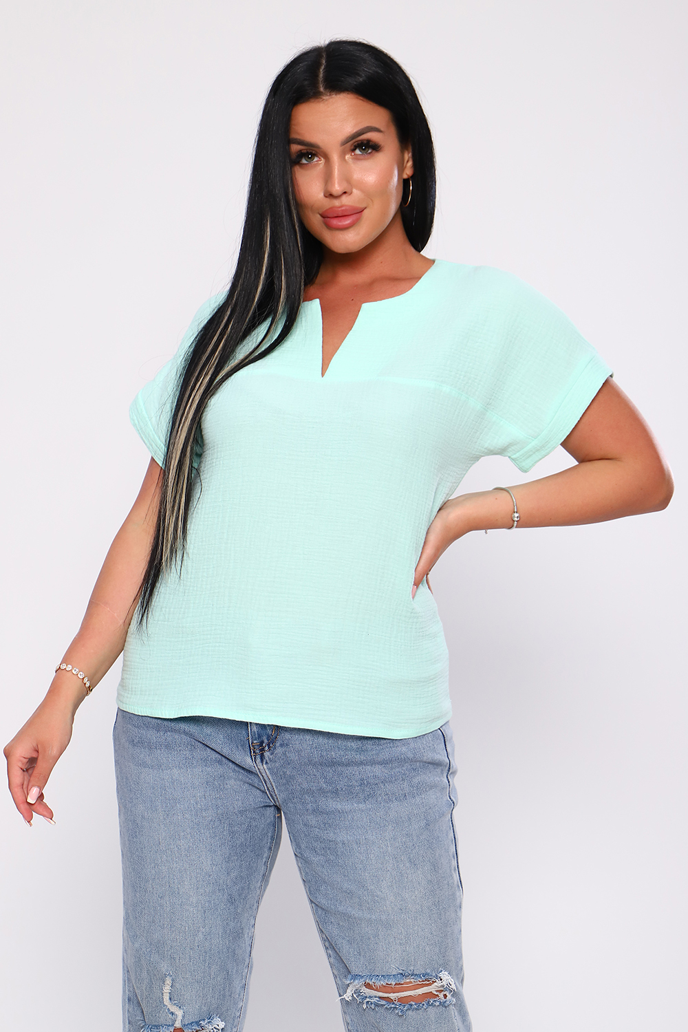 Удобная и практичная футболка из муслина - настоящая находка для тех, кто хочет выглядеть элегантно в любое время года. Муслин, состоящий из 100% хлопка, обеспечивает комфорт и свежесть, позволяет коже дышать в любую погоду. Свободный крой футболки подчеркивает фигуру, обеспечивает свободу движения. Спущенный рукав с небольшим манжетом придает законченность образу, V-образный вырез горловины подчеркнет вашу женственность и удлинит шею. Футболка из муслина проста в уходе, быстро сохнет, не требует глажки. В ней вы будете чувствовать себя уверенно и комфортно и на работе, и на отдыхе. Носите ее самостоятельно и с пиджаком - она гармонично дополнит и деловой костюм , и летний наряд.