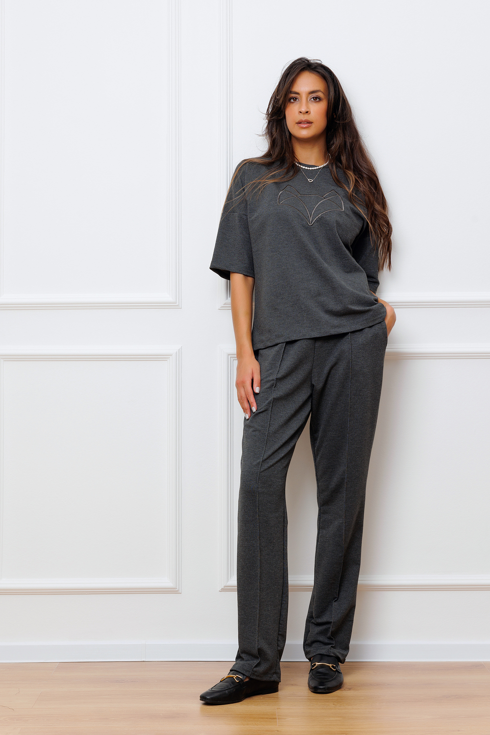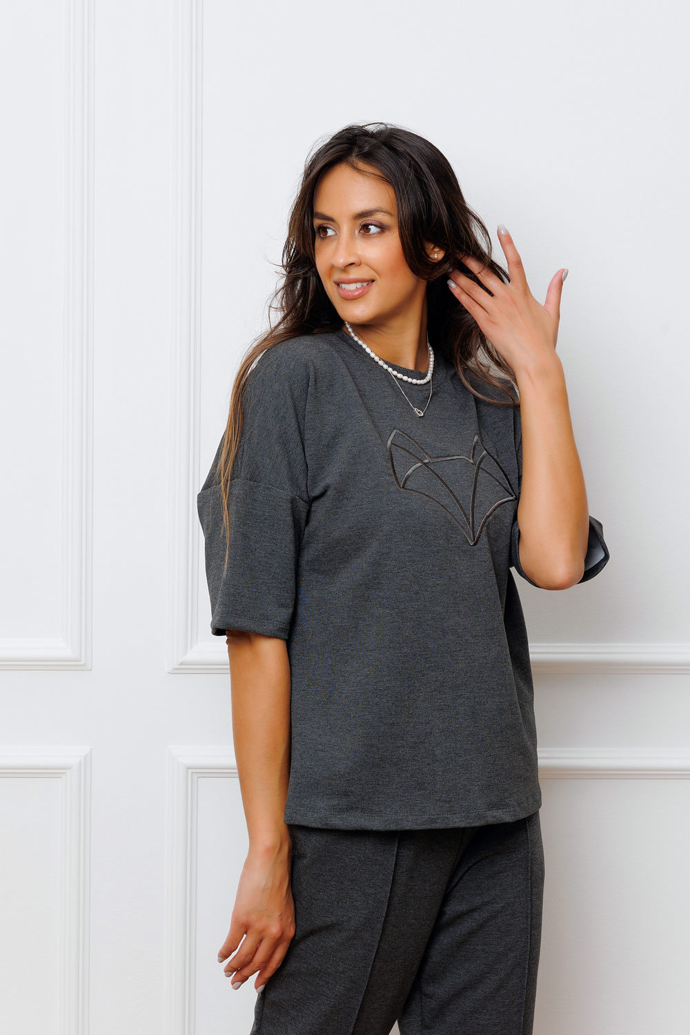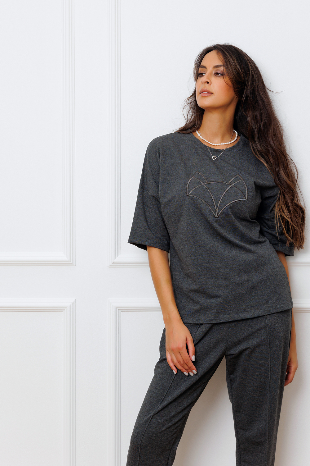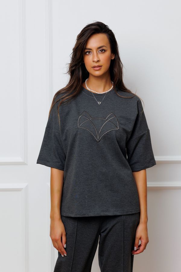 Однотонная футболка оверсайз с вышивкой - мастхэв любого гардероба. Модель лаконичного дизайна, что, в очередной раз, доказывает её универсальность. Вырез горловины округлый. Рукав удлиненный. Материал - очень приятное к телу плотное трикотажное полотно (футер). Состав: 60% хлопок, 40% полиэстер. Рост модели на фото 173 см, размер - onesize.