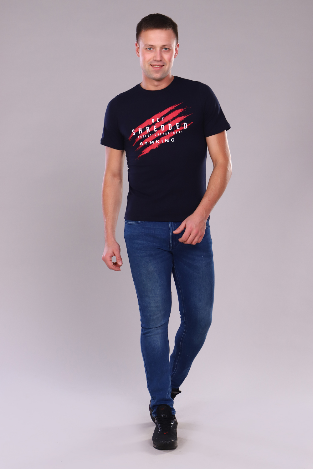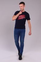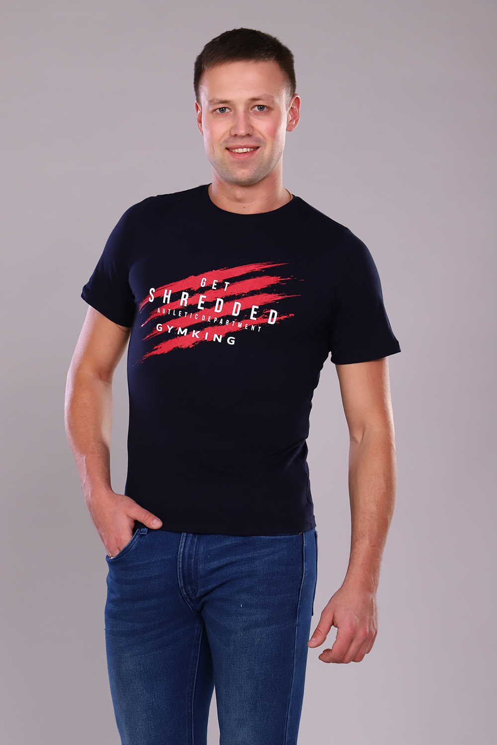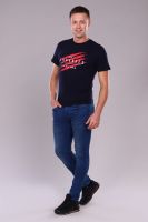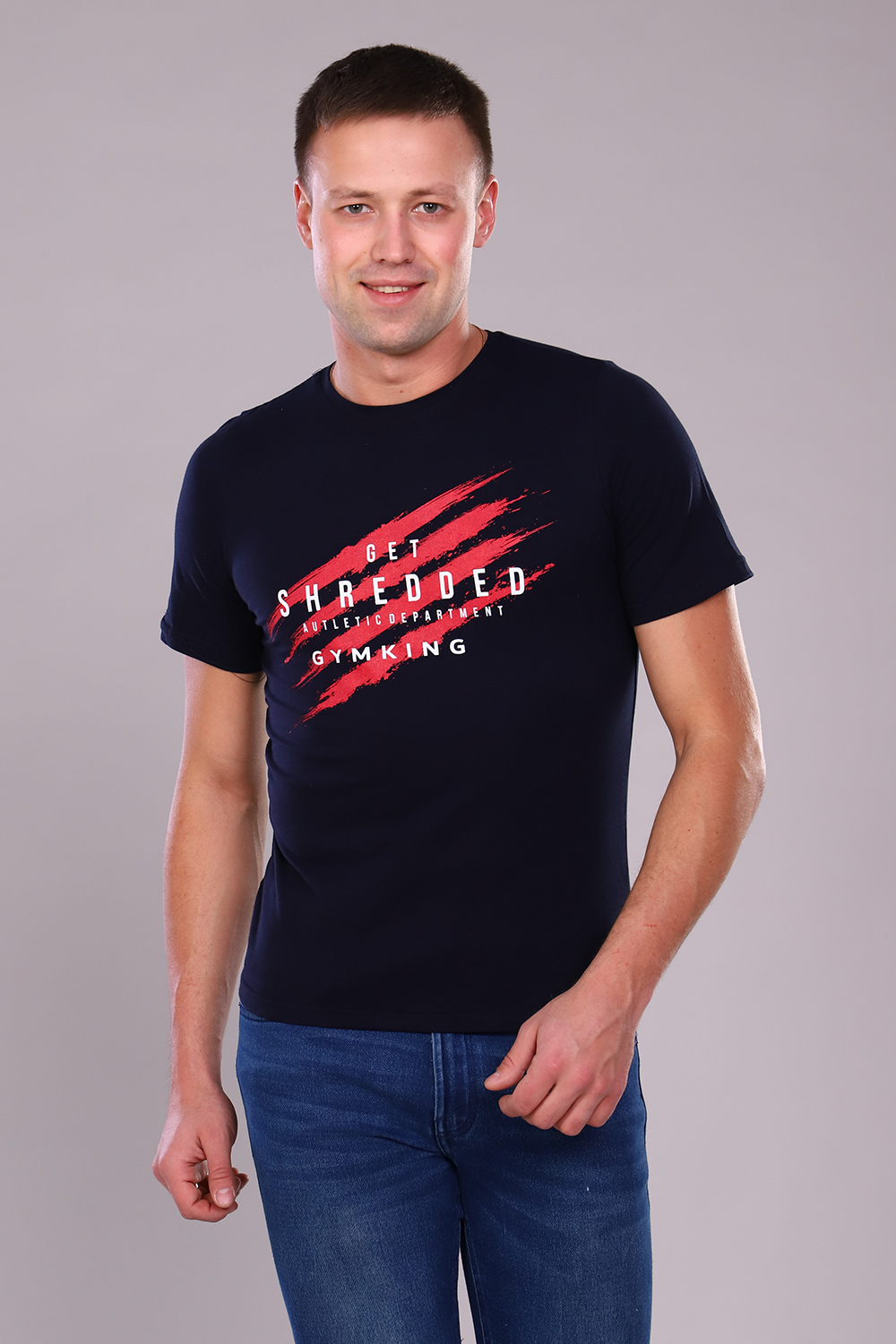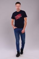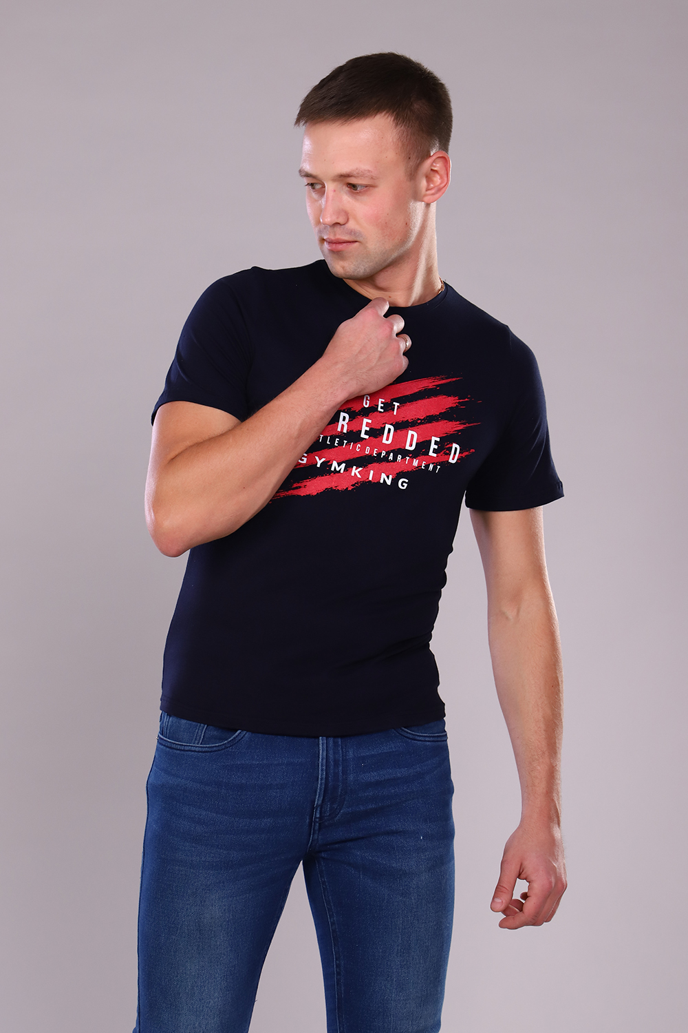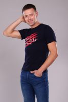 Футболка прямого кроя из эластичной ткани. На полочке печать