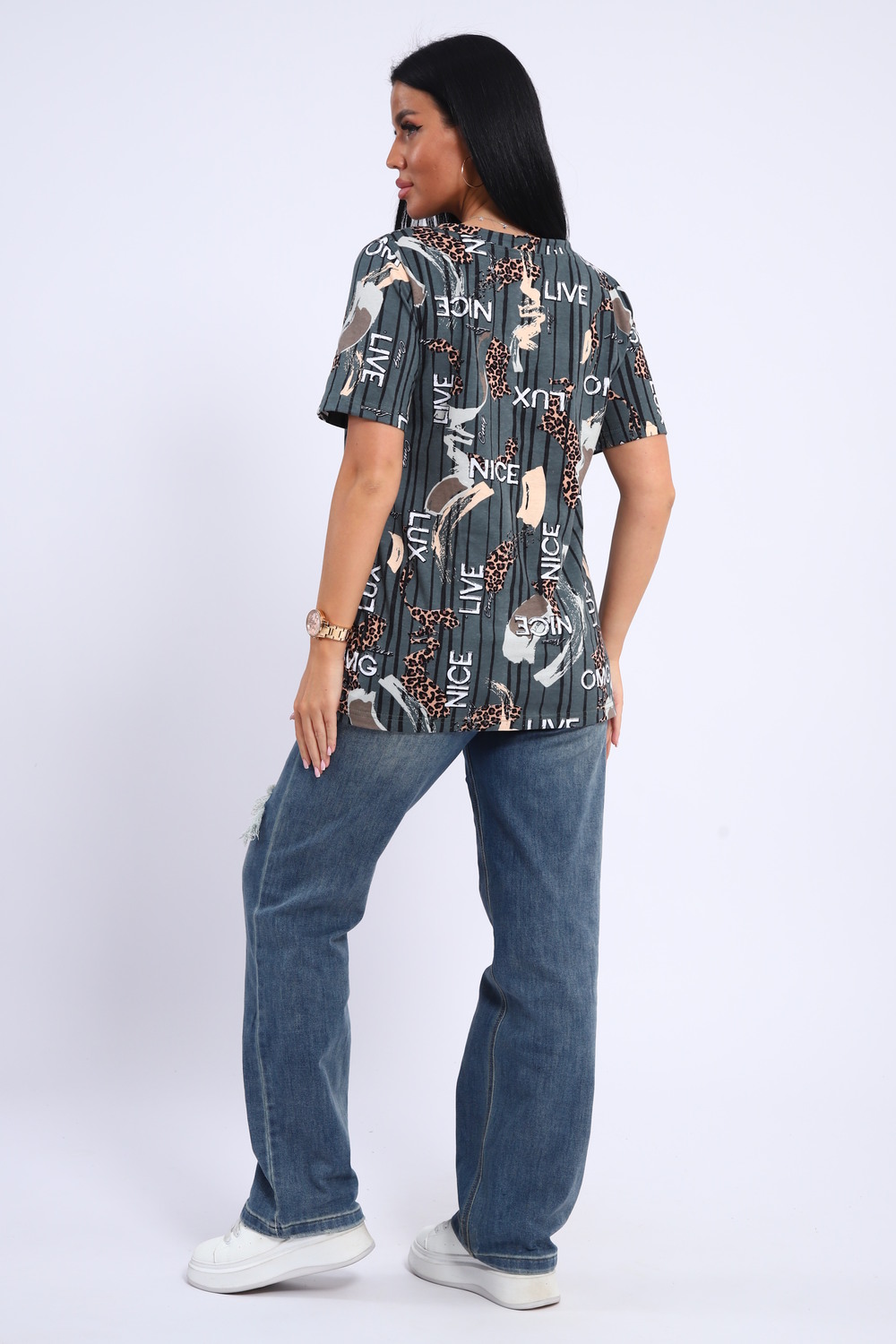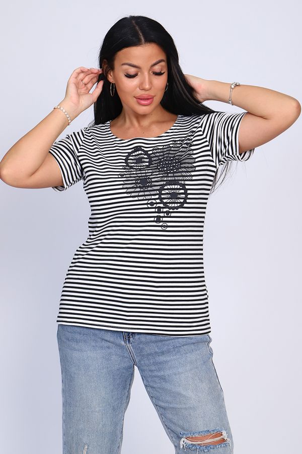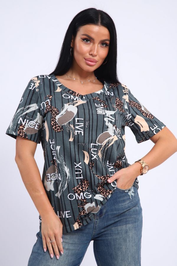 Футболка женская с V образным вырезом горловины и коротким рукавом.