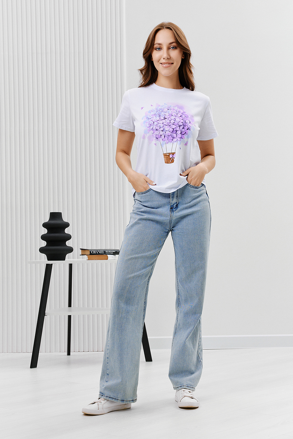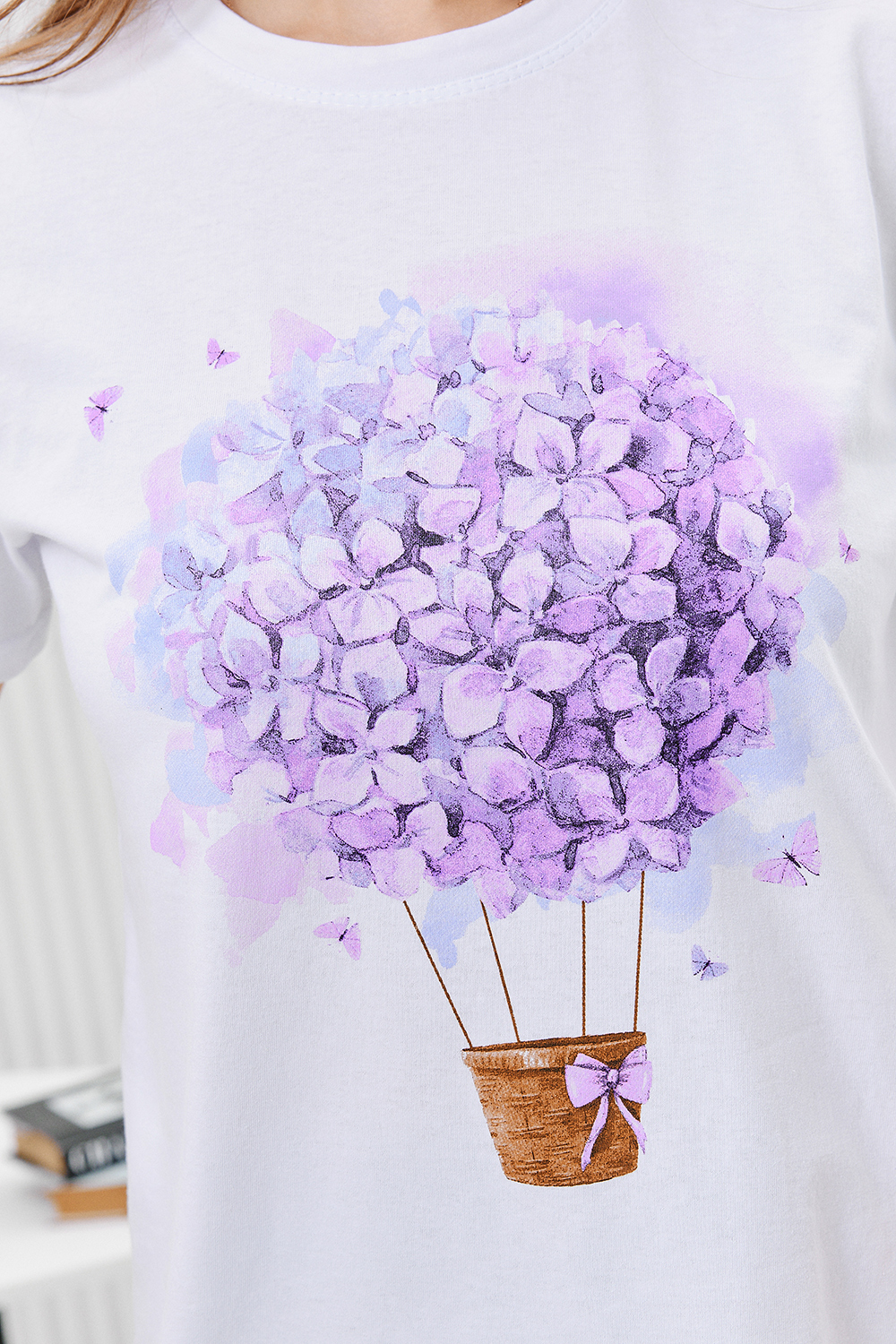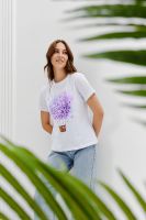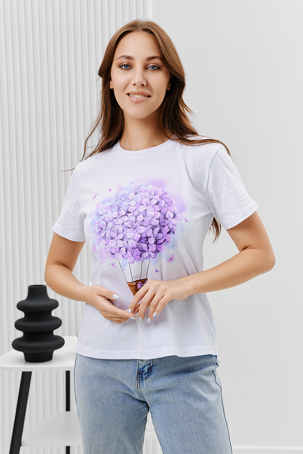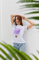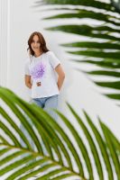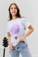 Футболка женская - это классика женского гардероба любой девушки. Это базовая модель с ярким принтом отлично смотрится с джинсами, юбками, брюками. Прямой силуэт, втачной рукав, горловина округлой формы обработана обтачкой из основного полотна.