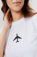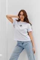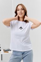 Футболка женская - это классика женского гардероба любой девушки. Это базовая модель с ярким принтом отлично смотрится с джинсами, юбками, брюками. Прямой силуэт, втачной рукав, горловина округлой формы обработана обтачкой из основного полотна.