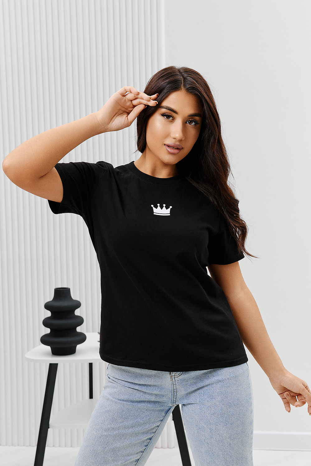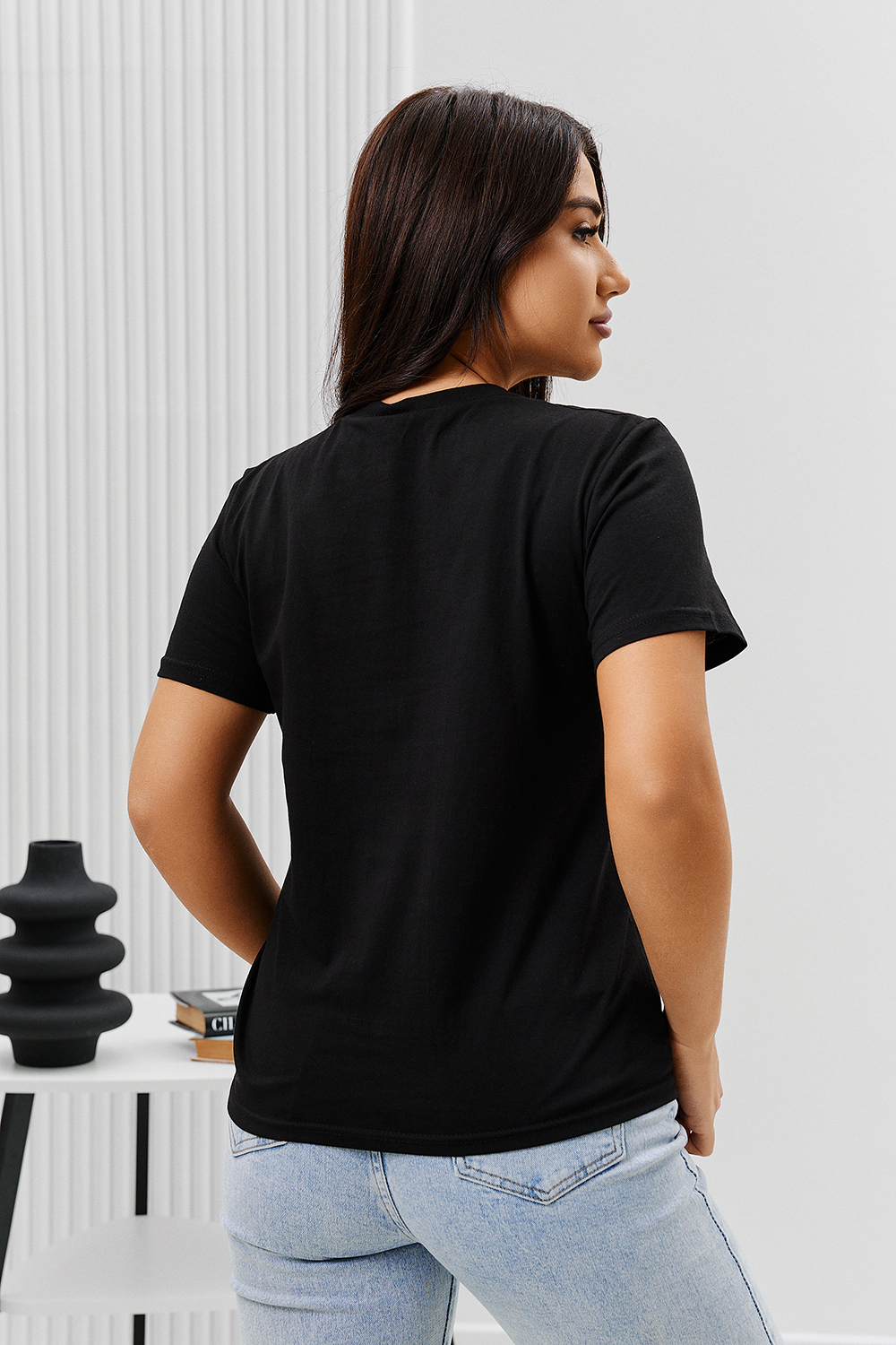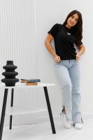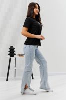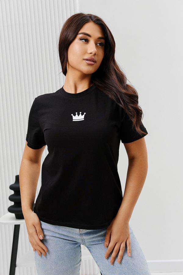 Футболка женская - это классика женского гардероба любой девушки. Это базовая модель с ярким принтом отлично смотрится с джинсами, юбками, брюками. Прямой силуэт, втачной рукав, горловина округлой формы обработана обтачкой из основного полотна.