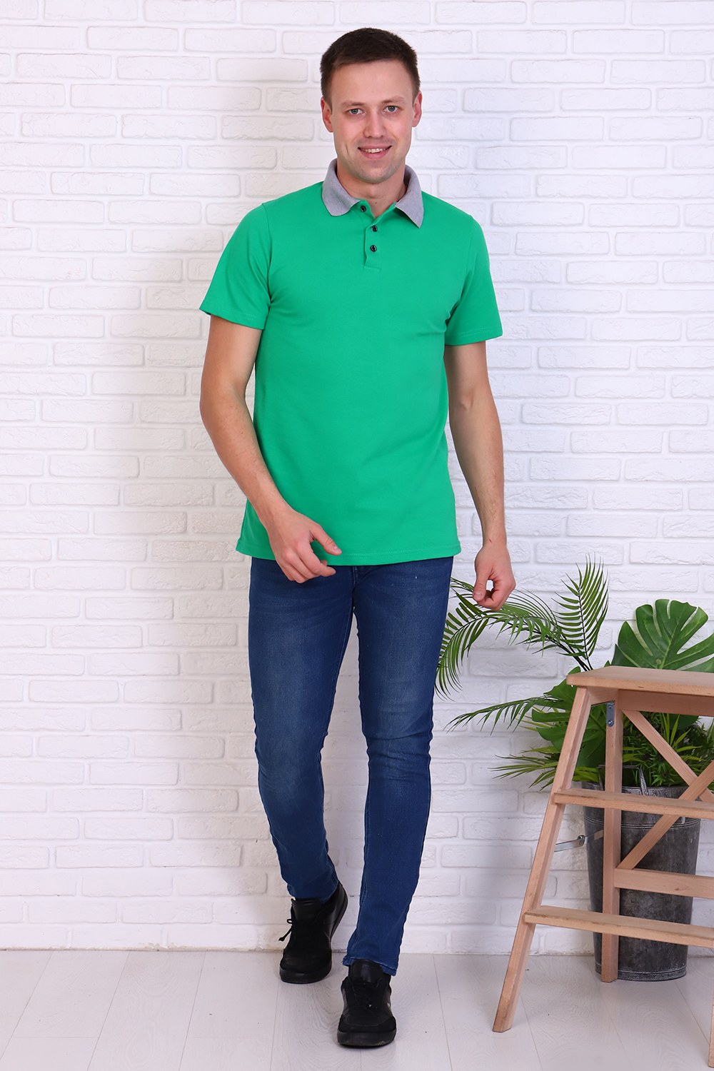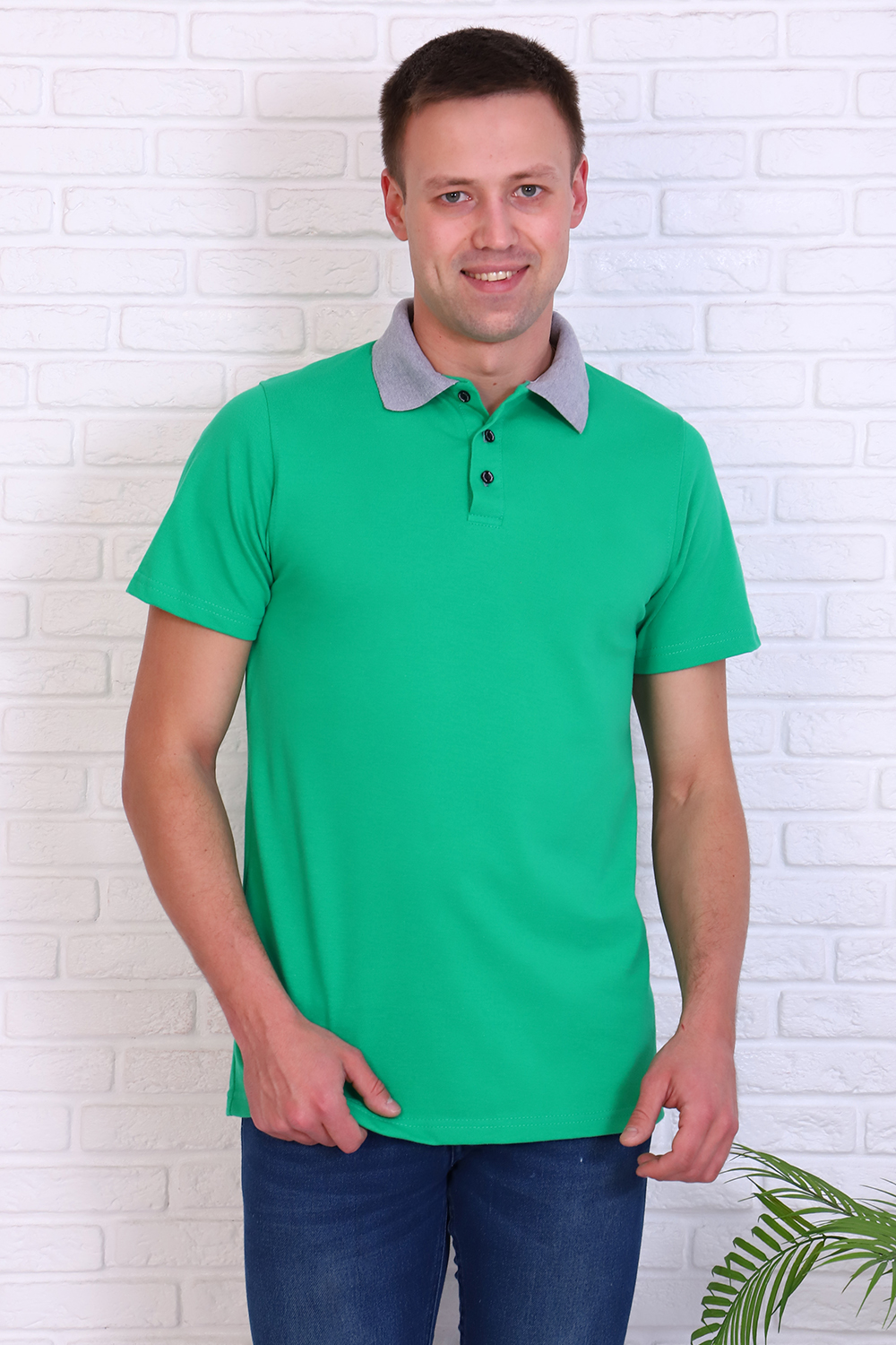 Футболка поло мужская из ткани лакост пенье 100% хлопок. Воротник на футболке вязаный, светло-серого цвета, планка на 3 пуговицы из основной ткани, рукав под подшивку. Футболка удобная и комфортная, подойдет для повседневной носки, прогулок и отдыха, после стирки сохраняет цвет и форму.