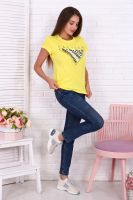 Модная женская молодежная футболка полуприлегающего силуэта с коротким втачным рукавом с подгибкой на лицевую сторону, образуя тонкий манжет, шириной 15 мм. Округлая горловина обработана обтачкой из основного материала с декоративной отсрочкой по линии втачиваемого воротника. Футболка средней длины из трикотажного полотна - кулирки, 100% хлопок. Яркие расцветки с привлекательными принтами. Для повседневного уличного и домашнего ношения, для прогулок, спорта, для бега, на физкультуру, в школу, на фитнес, на йогу, для дома и дачи, в отпуск, но море. Отлично сочетаются с джинсами, брюками, шортами, бриджами, леггинсами, велосипедками, юбками. Прекрасный подарок любимым женщинам, девушкам, девочкам, подросткам, мамам, подругам.