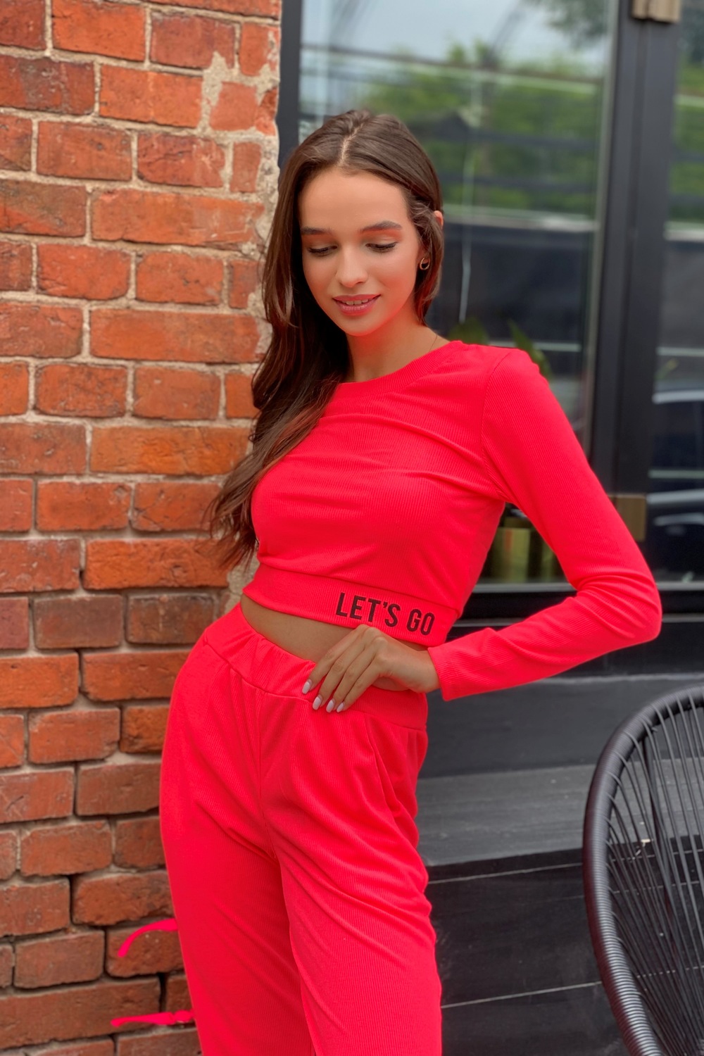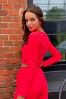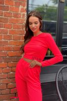 Футболка облегающая, с округлой горловиной, длиной выше талии. Рукав втачной, длинный. Горловина обработана обтачкой из основного полотна.
