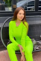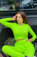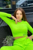Футболка облегающая, с округлой горловиной, длиной выше талии. Рукав втачной, длинный. Горловина обработана обтачкой из основного полотна.