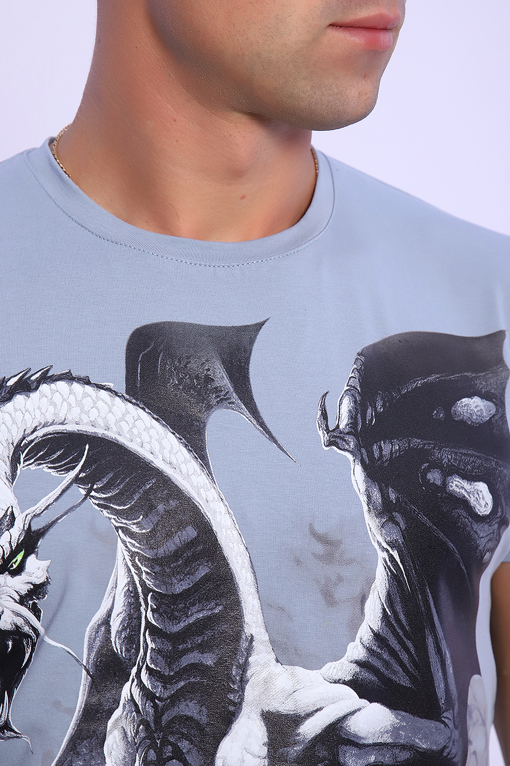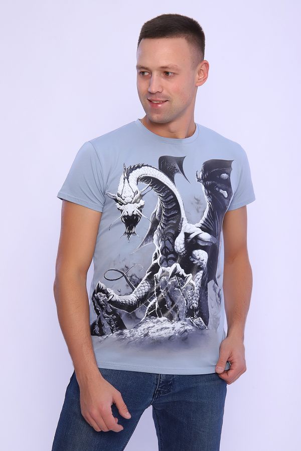 Футболка мужская с оригинальным принтом - дракон символ 2024 года, из качественной кулирки с лайкрой пенье. Базовая футболка с круглой горловиной, коротким втачным рукавом необходимая вещь в мужском гардеробе. Стильный принт, отличный подарок на новый год, футболка для настоящих мужчин.