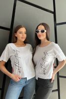 Футболка прямого силуэта, с округлой горловиной. Рукав короткий, с фигурной линией низа. Горловина обработана бейкой из основного полотна.