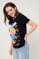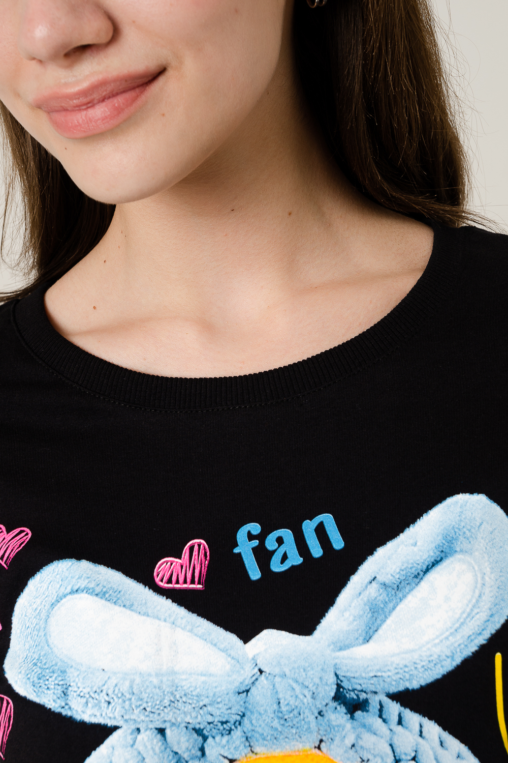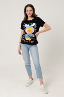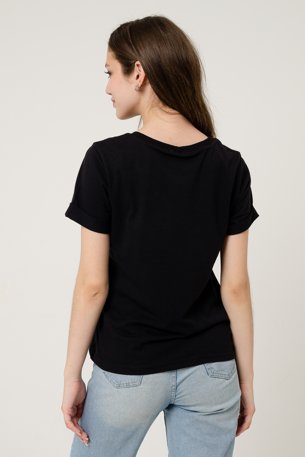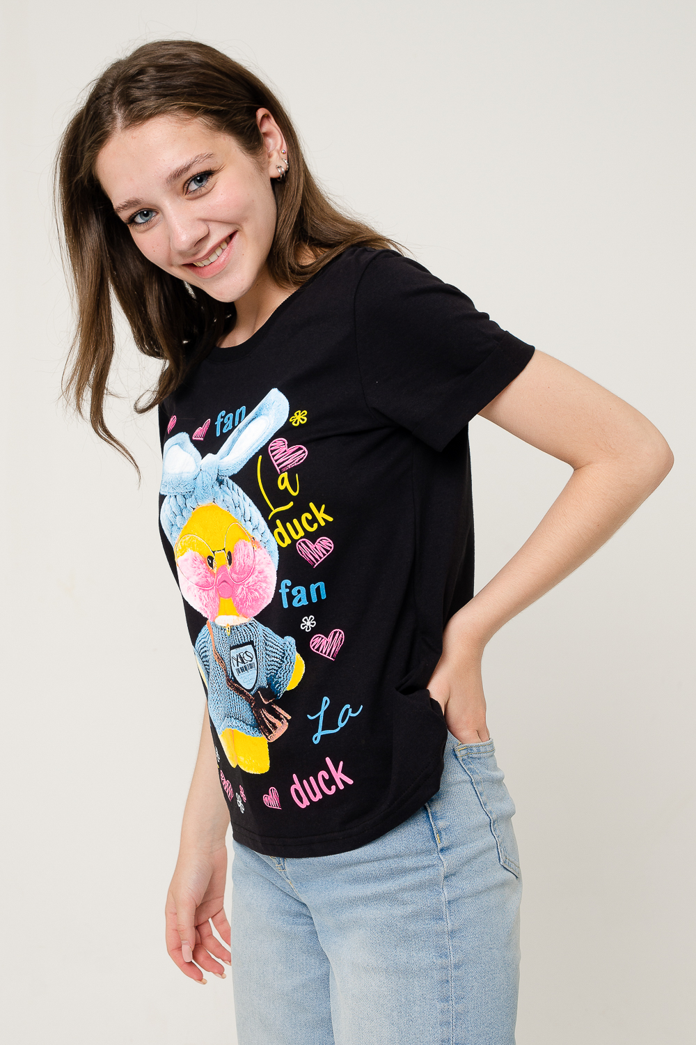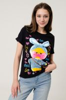 Футболка прямого силуэта, с округлой горловиной, длиной до середины бедра. Рукав втачной, короткий, с отворотом. Горловина обработана обтачкой из эластичного полотна. В продаже есть аналогичная детская футболка 5126