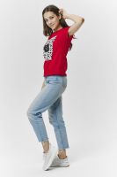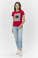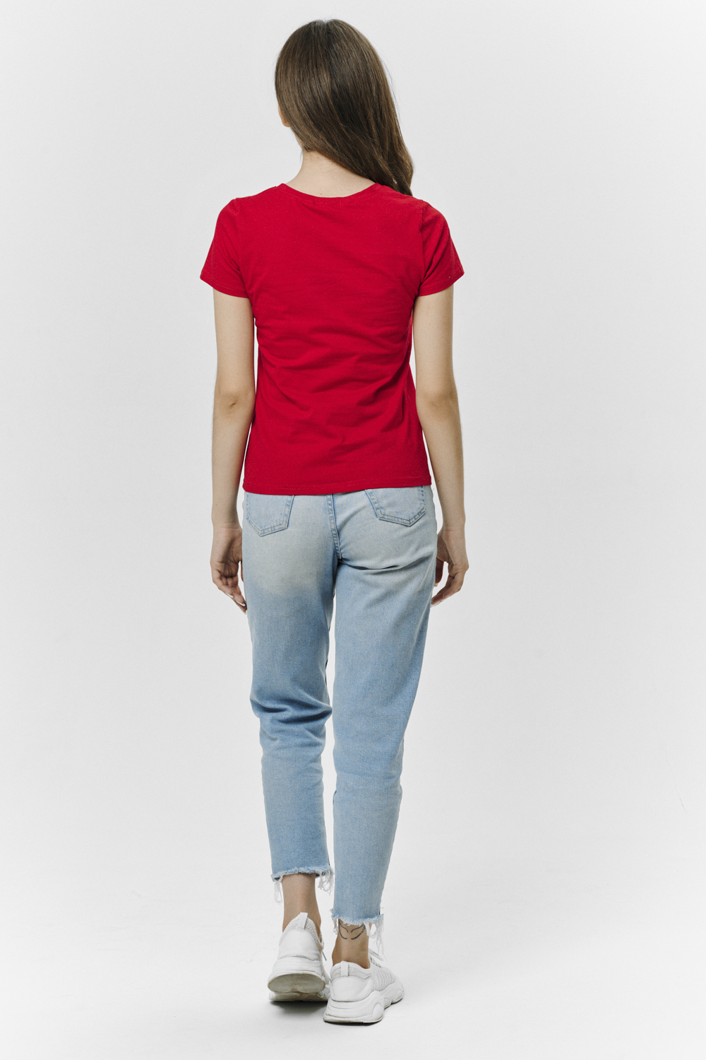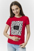 Футболка прямого силуэта, с округлой горловиной, длиной до середины бедра. Рукав втачной, короткий. Горловина обработана обтачкой из основного полотна.