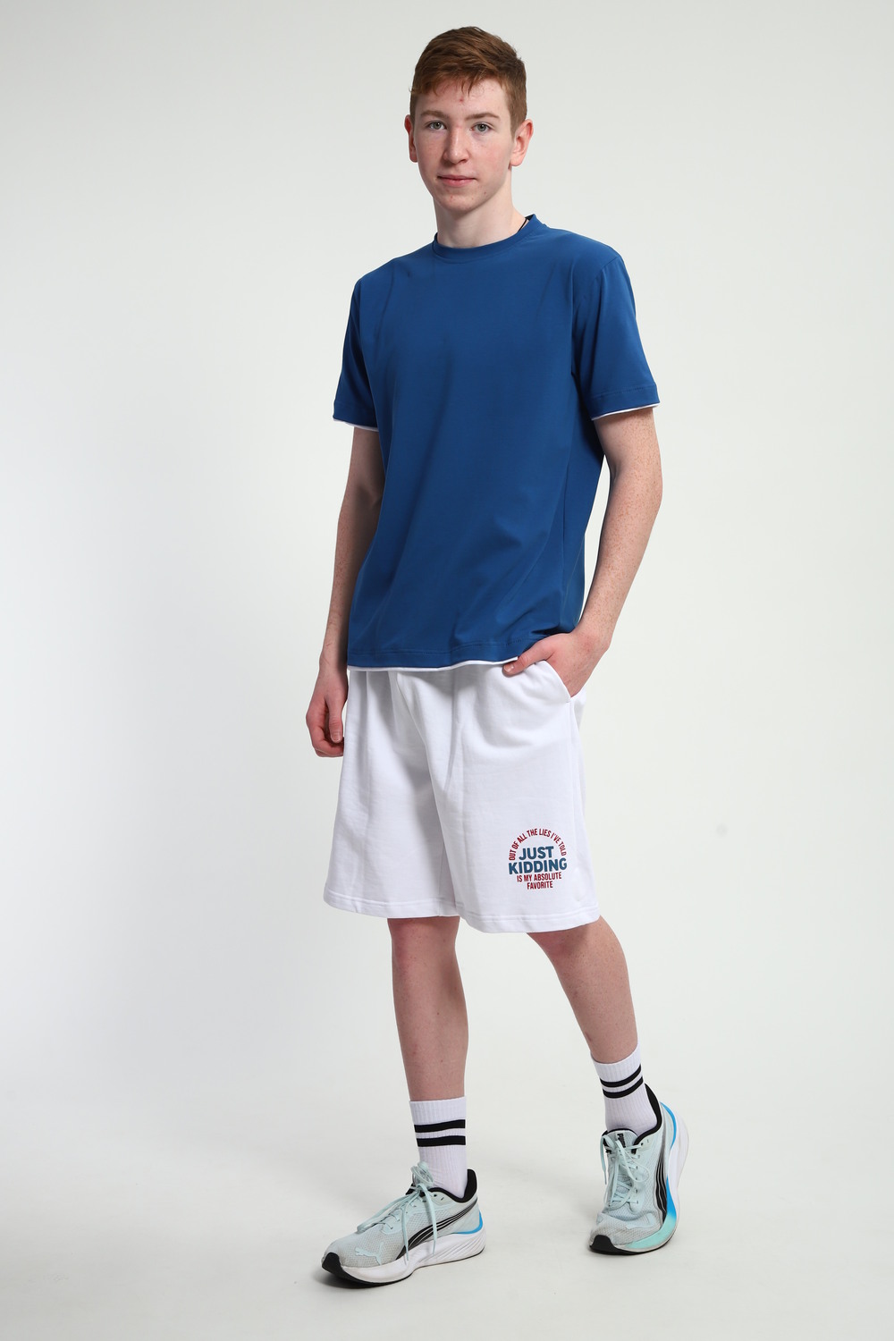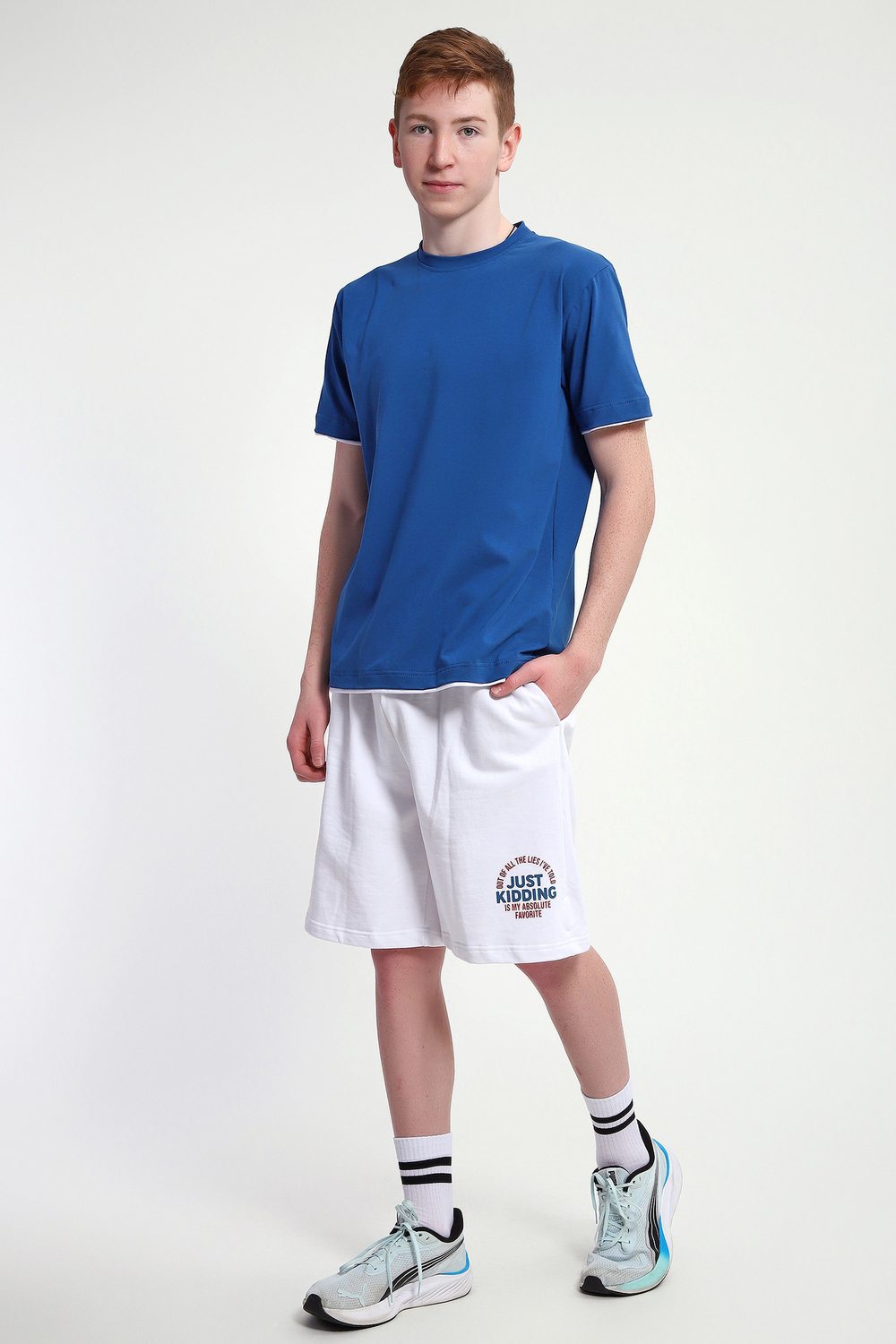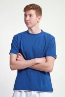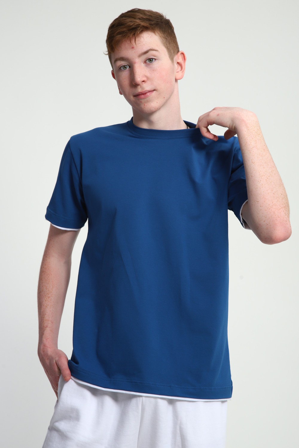 Футболка мужская выполнена из кулирки с лайкрой качества пенье с коротким рукавом. Горловина обработана обтачкой из основной ткани и х/б киперной лентой контрастного белого цвета. Низ рукавов и изделия отделаны белым кантом из рибаны. Футболка имеет комфортную посадку, отлично подойдет как для дома, так и для прогулок и спорта.