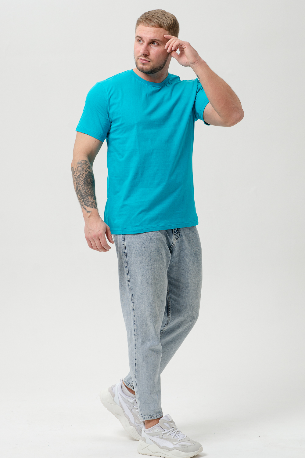 Классическая мужская футболка однотонного цвета. Базовая свободная трикотажная футболка из 100% хлопка - это стильная вещь, которая прекрасно подойдет для всех случаев: отдыха, активных тренировок, прогулки или офиса. Благодаря своему классическому дизайну, она легко сочетается с любой частью гардероба, а ее удлиненная форма и круглый вырез горловины придают удобство и стиль. Производство Узбекистан. Плотность ткани 150-160гр. Допускается небольшое различие в цвете от представленного на фото. В светло-сером возможна меланжированная расцветка. Размер возможен двойной, ориентируйтесь по меньшему размеру.