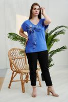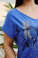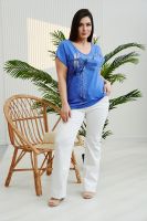Футболка женская прямого силуэта с разрезами в боковом шве. Y-образный вырез горловины. Рукав цельнокроенный короткий. На полочке стильный принт.