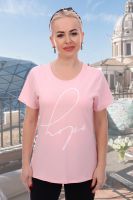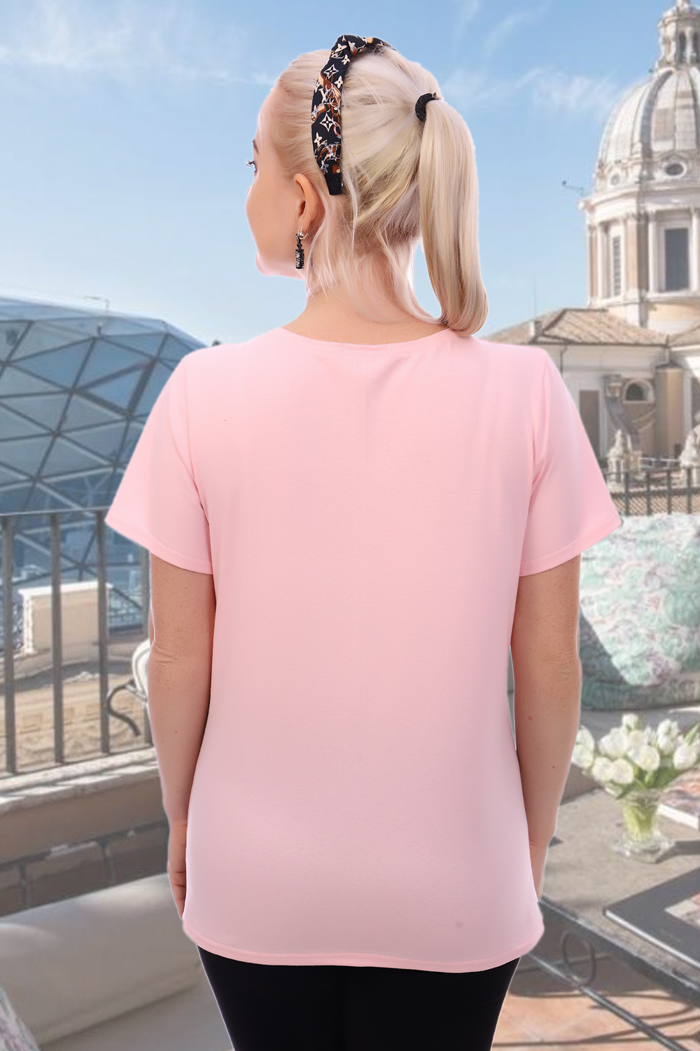 Футболка с нежным принтом изготовлена из мягкого 100% хлопка. Горловина обработана двойным кантом. Рукава и низ в подгибку.