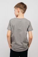 Футболка для мальчика прямого силуэта с втачным коротким рукавом. Горловина круглая, обработана воротником из рибаны. Горловина спинки внутри укреплена бейкой из кулирки. Низ изделия и рукава обработан швом вподгибку. На полочке Фотопринт с шелкографией. Надпись переводится как "Наслаждайся каждым моментом; Самый простой способ сохранять спокойствие-лежать под пальмой; Волны позитива".