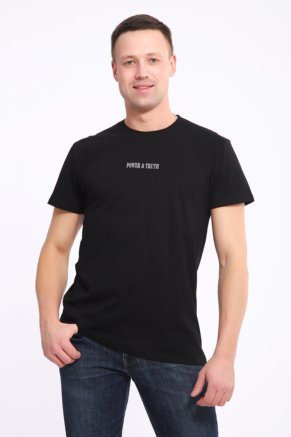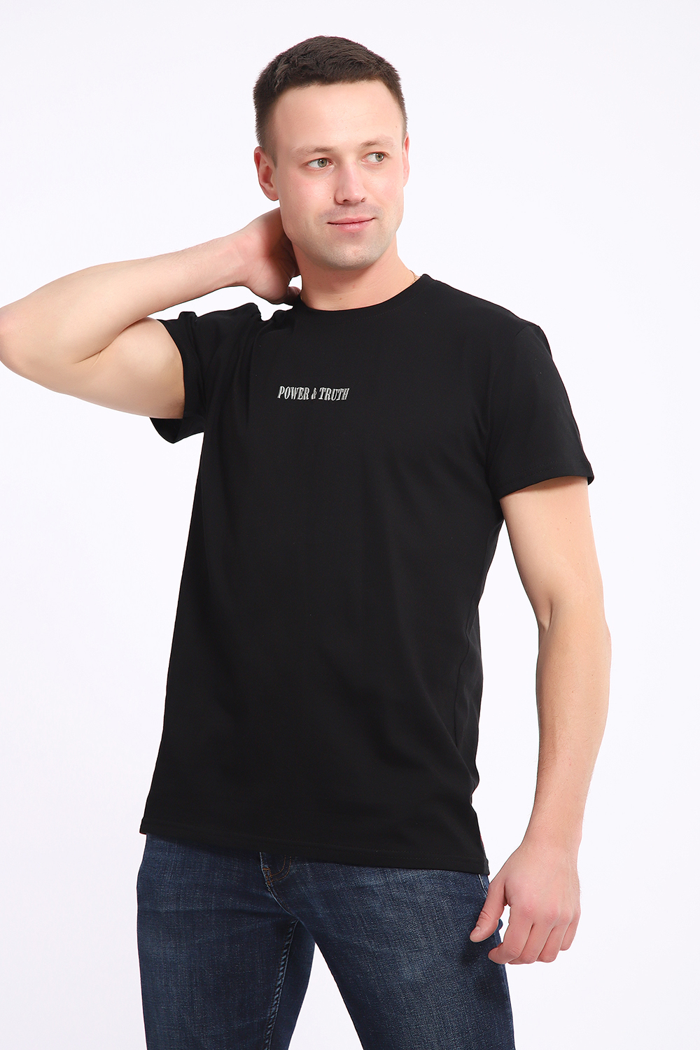 Футболка мужская однотонная с вышивкой ("Сила & Правда") на груди, из хлопкового трикотажа высокого качества пенье. Футболка с круглой горловиной, обработанной эластичной рибаной, внутренний шов закрыт тесьмой, втачной короткий рукав. Стильная, практичная, универсальная футболка необходимая вещь в одежде каждого любителя комфорта. Современный дизайн, лаконичная вышивка и высококачественный хлопок -отличное дополнение к базовому гардеробу и повседневным образам, а также для вечеринок, занятий спортом, фотосессий.