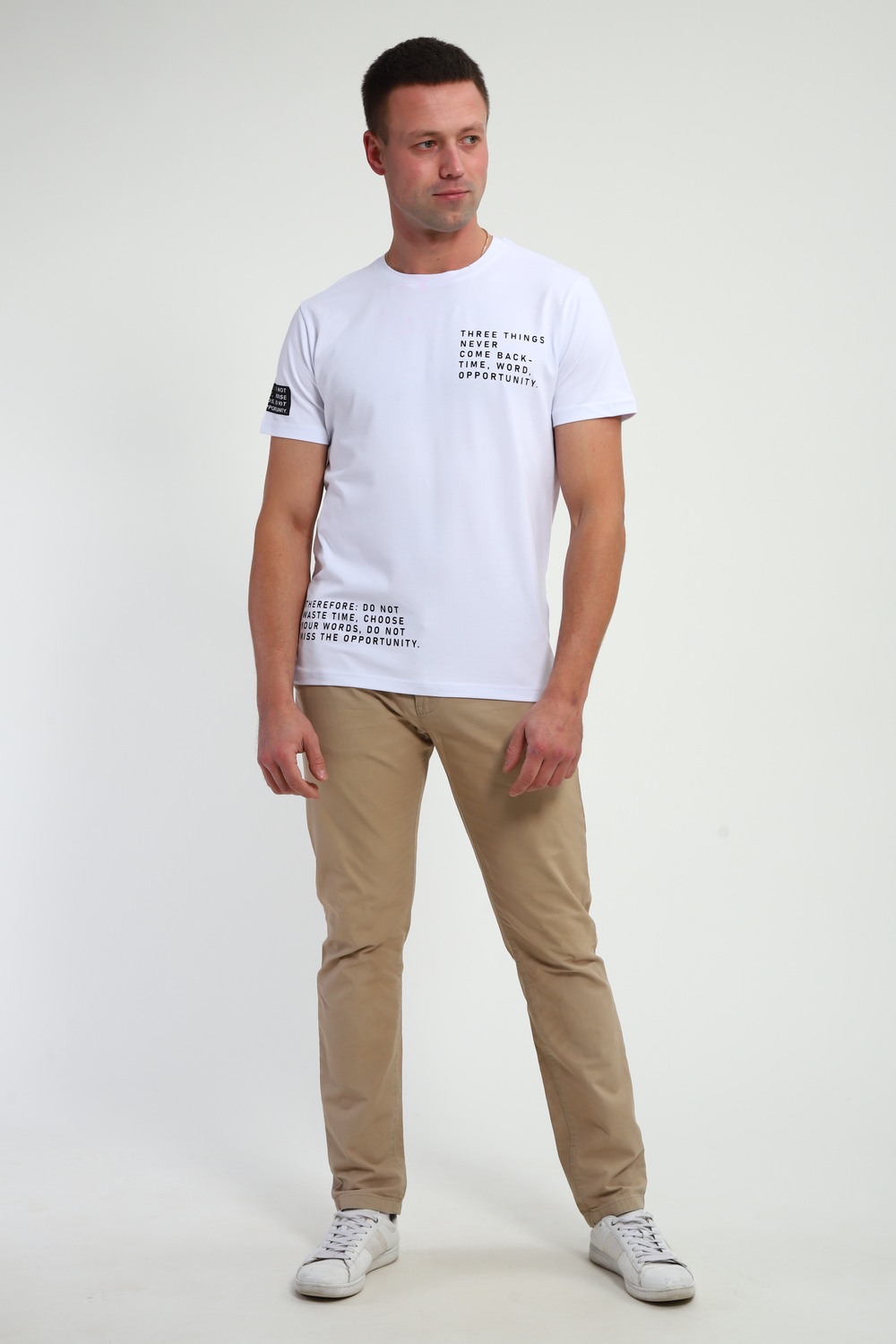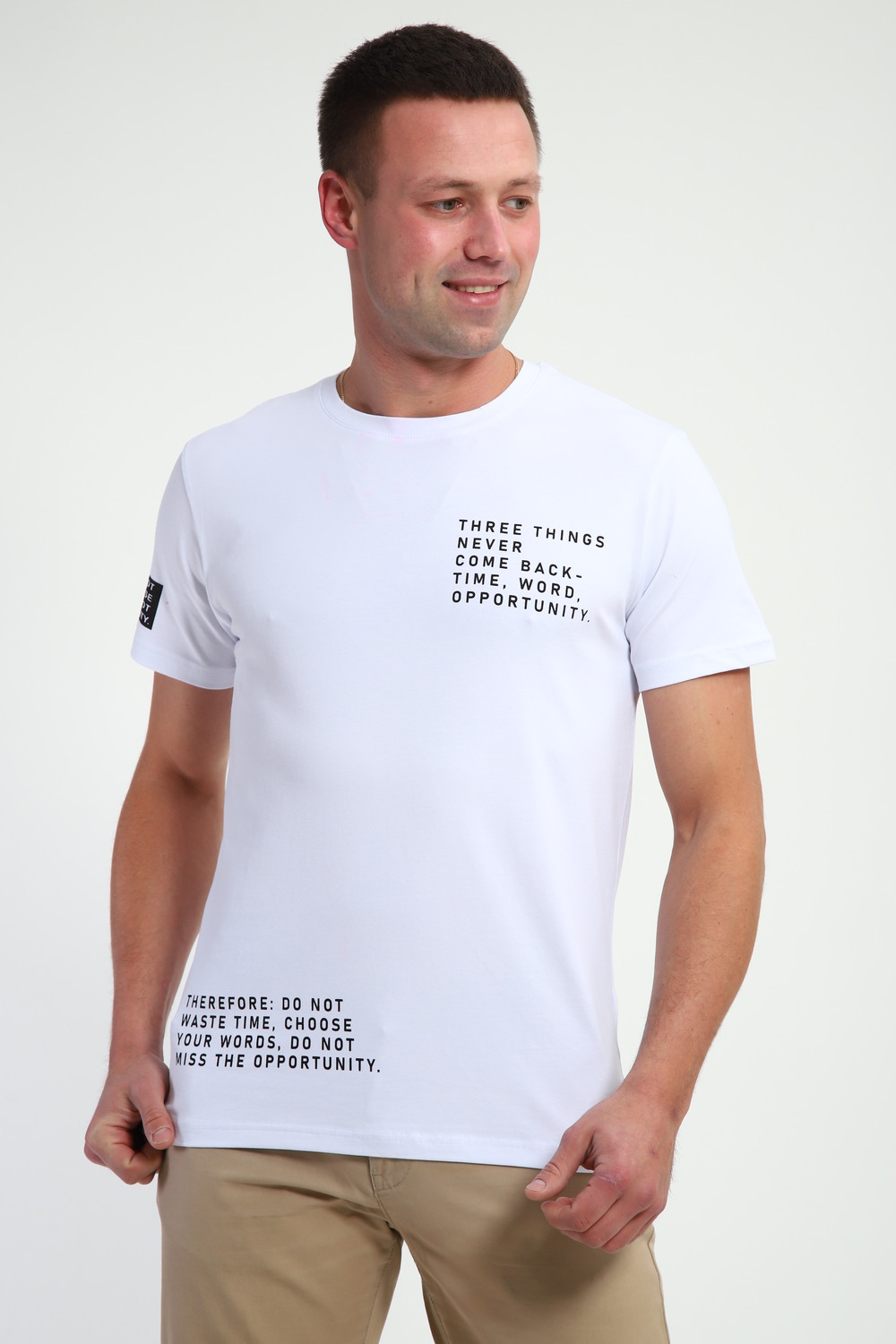 Базовая мужская футболка. Оформлена традиционным круглым неглубоким вырезом, с коротким рукавом. На футболке так же присутствует печать. Стильная футболка займет достойное место в вашем гардеробе: просто выберите ваш цвет.