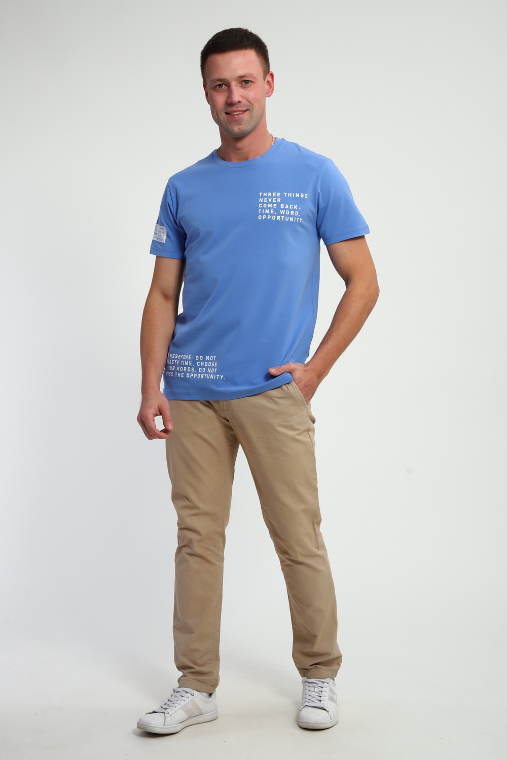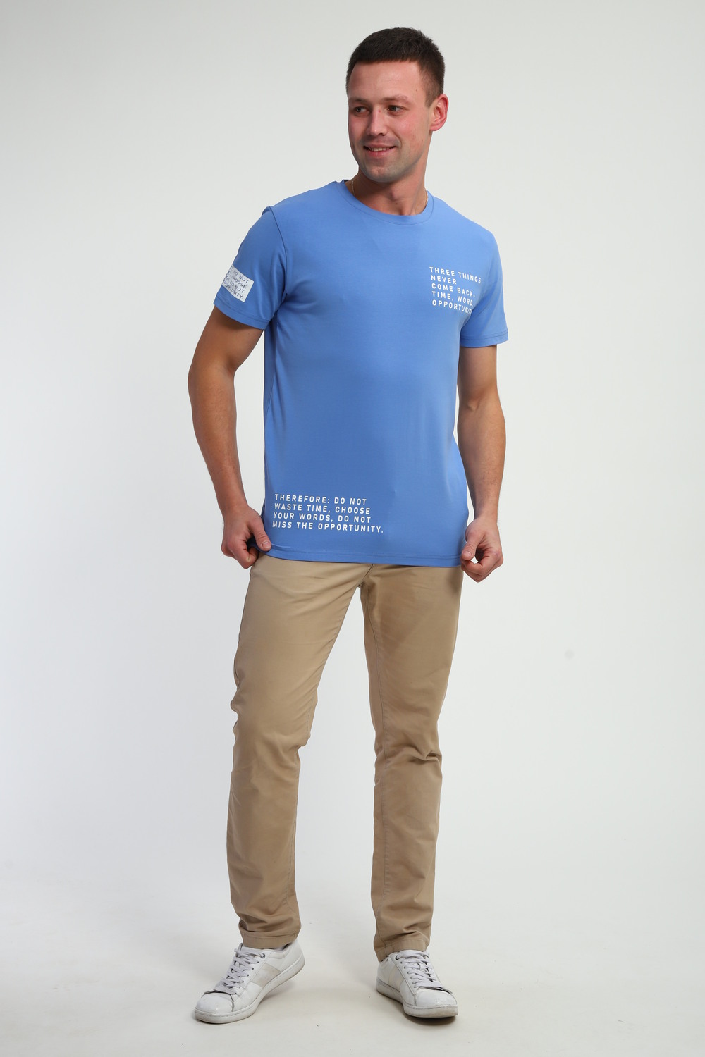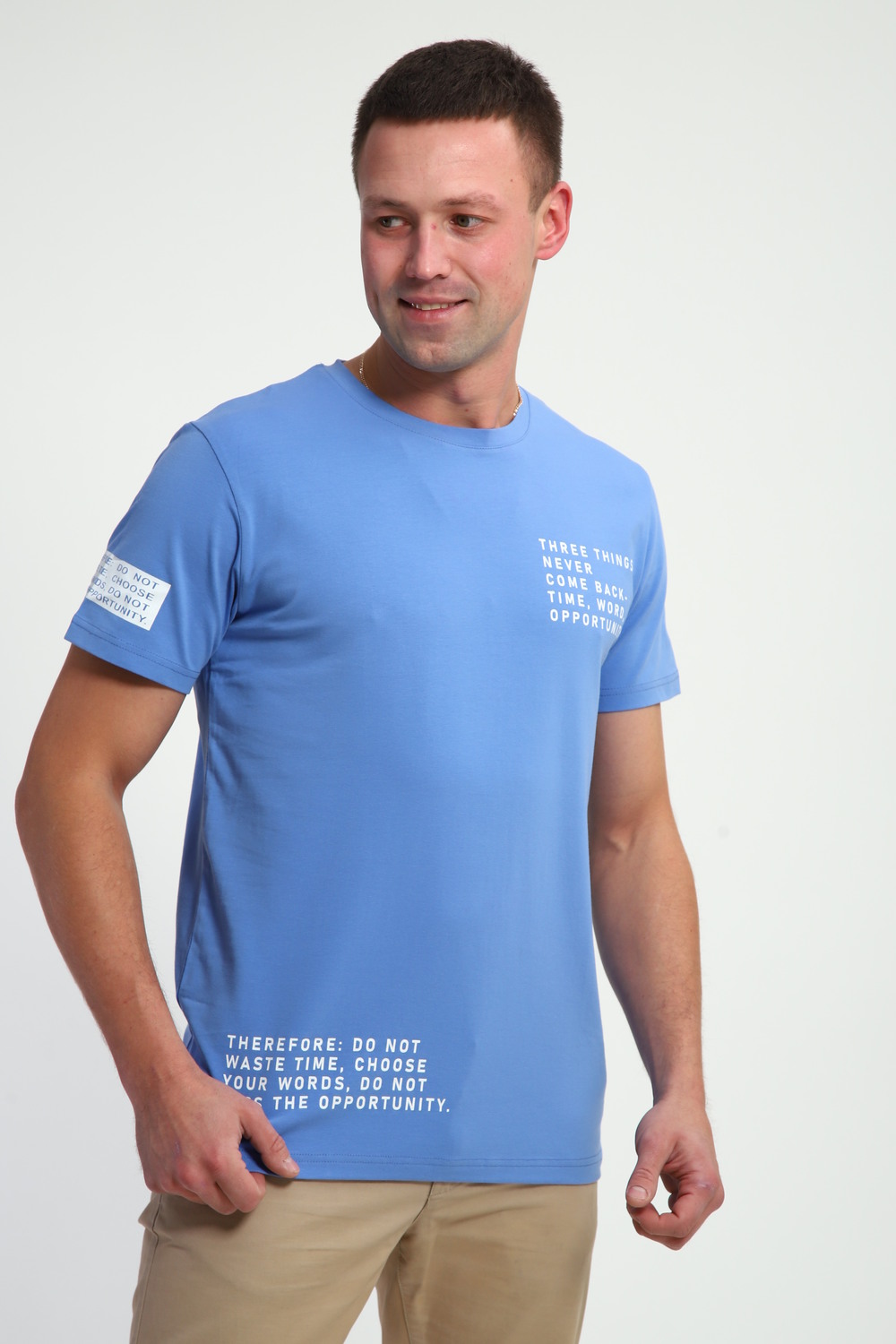 Базовая мужская футболка. Оформлена традиционным круглым неглубоким вырезом, с коротким рукавом. На футболке так же присутствует печать. Стильная футболка займет достойное место в вашем гардеробе: просто выберите ваш цвет.