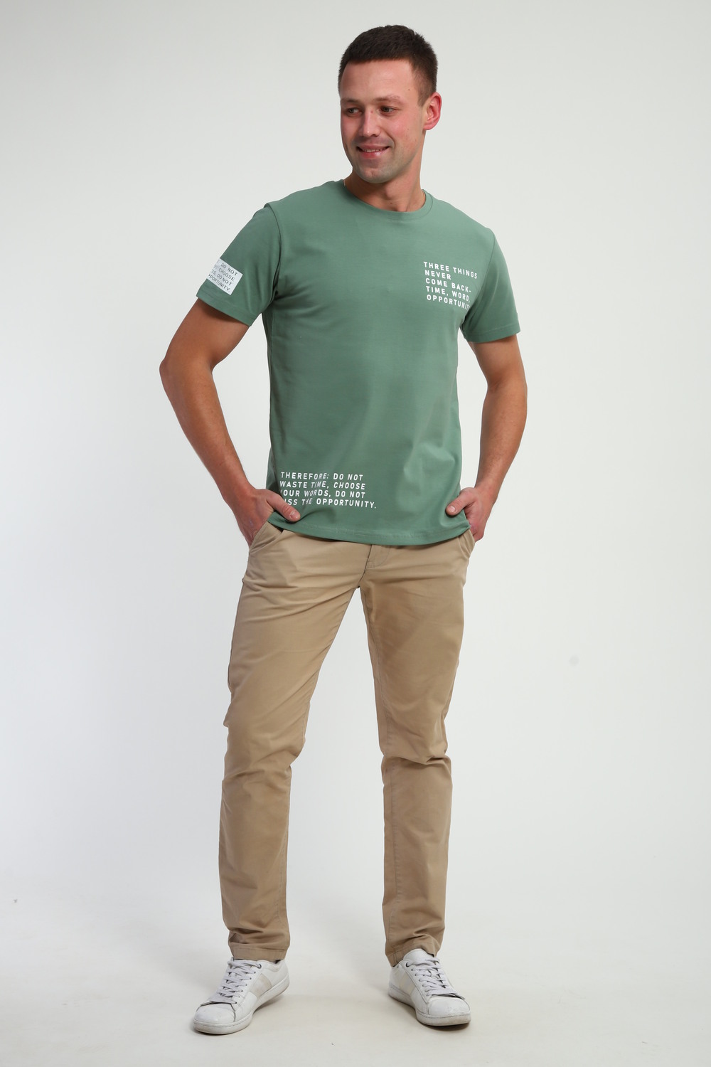 Базовая мужская футболка. Оформлена традиционным круглым неглубоким вырезом, с коротким рукавом. На футболке так же присутствует печать. Стильная футболка займет достойное место в вашем гардеробе: просто выберите ваш цвет.