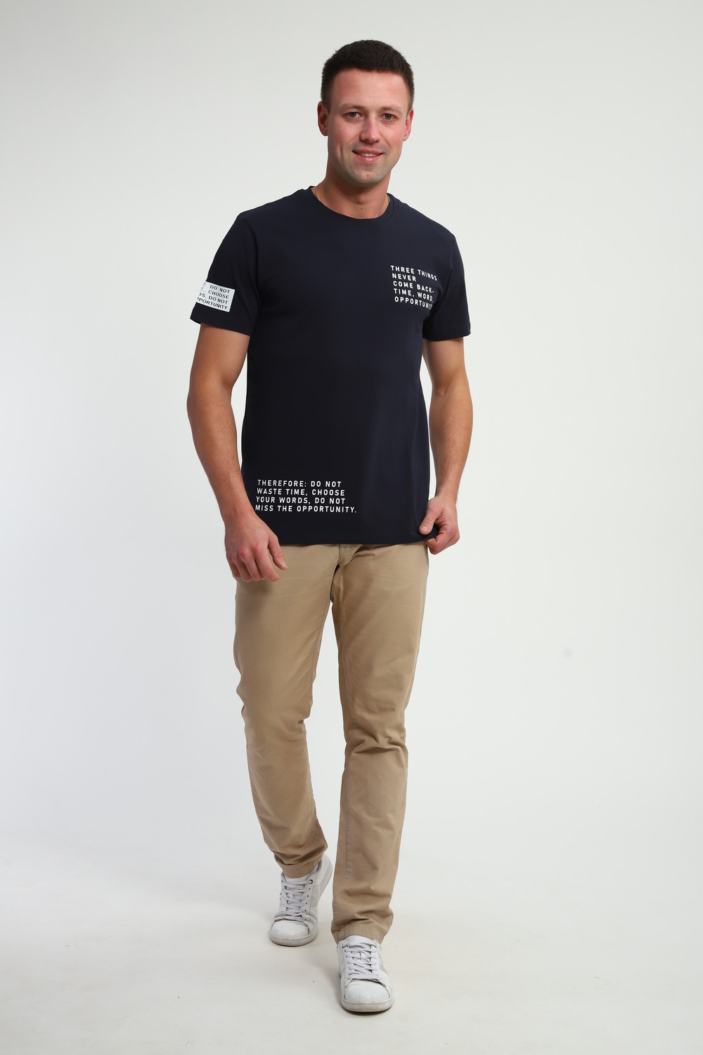 Базовая мужская футболка. Оформлена традиционным круглым неглубоким вырезом, с коротким рукавом. На футболке так же присутствует печать. Стильная футболка займет достойное место в вашем гардеробе: просто выберите ваш цвет.