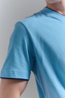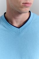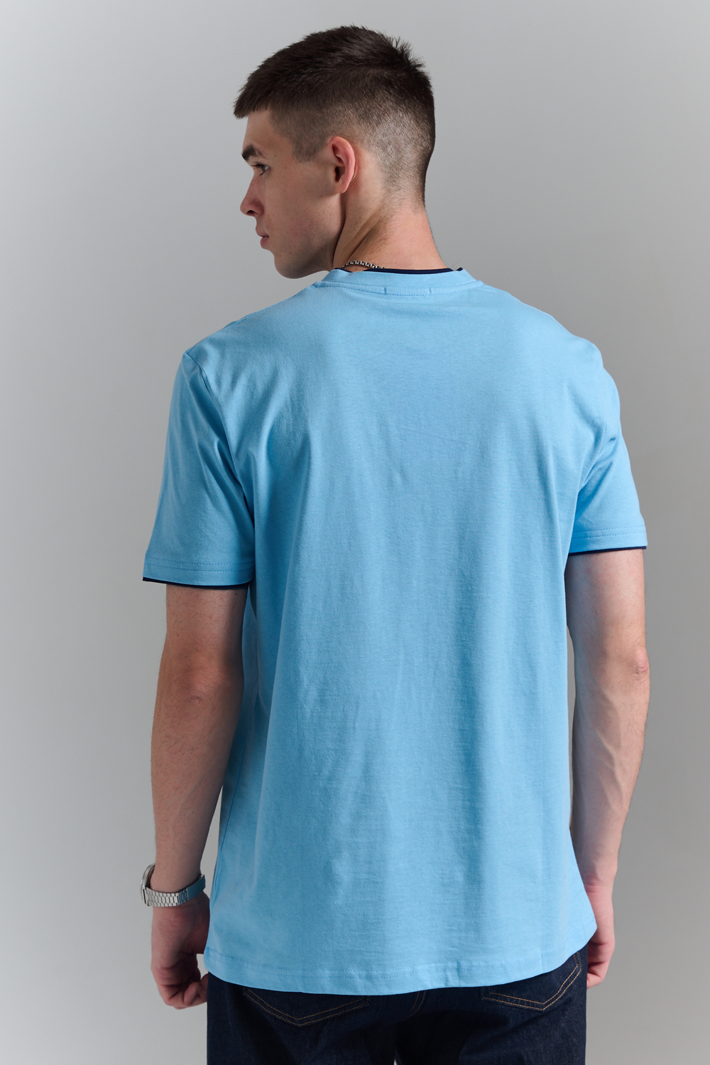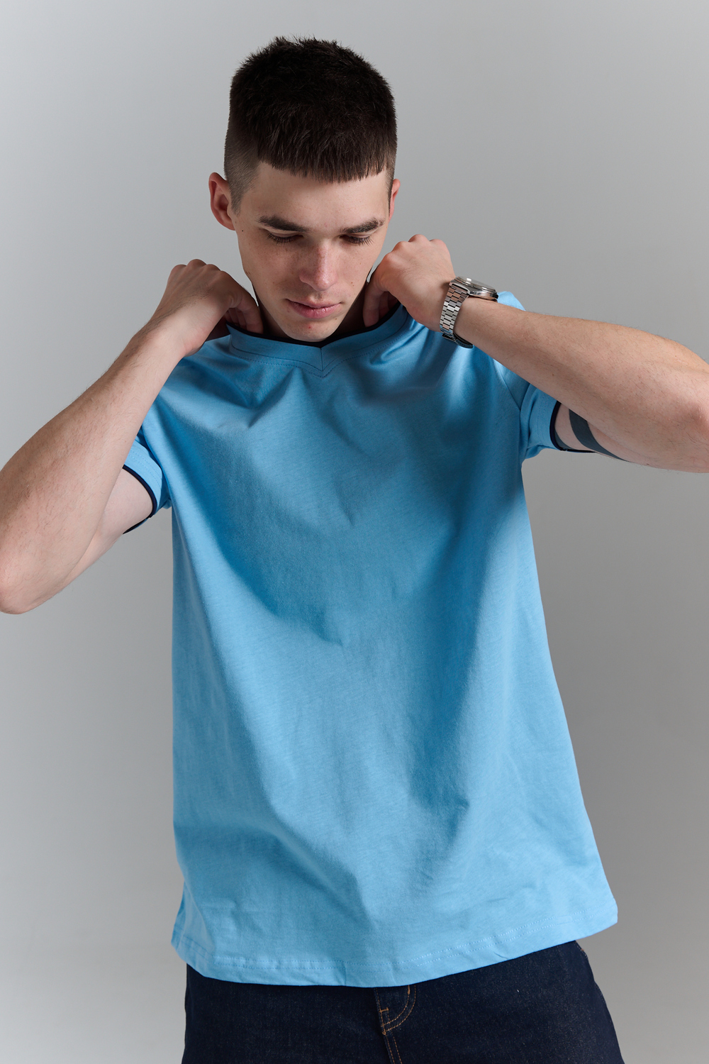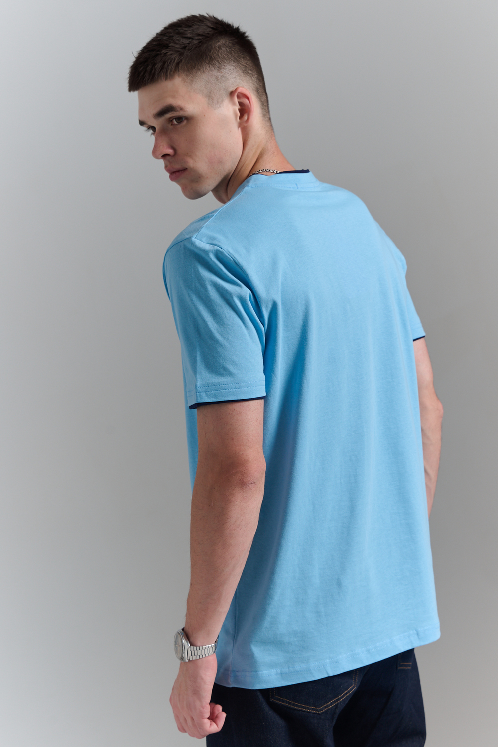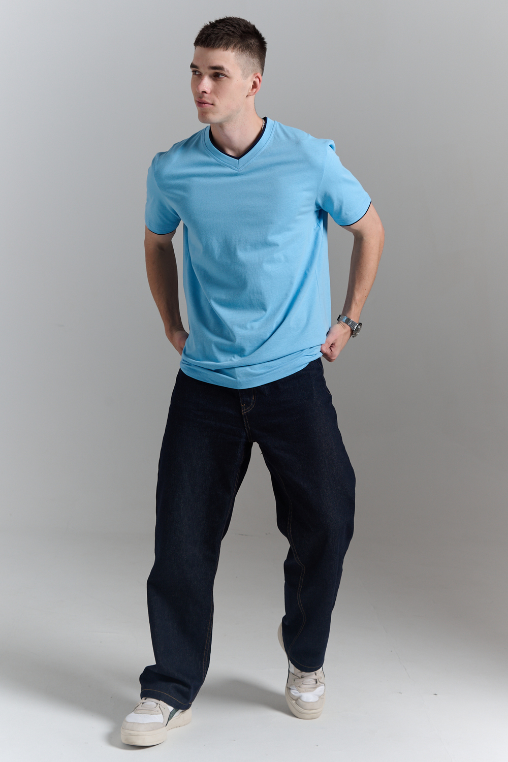 Футболка мужская однотонная с окантовкой из плотного дышащего хлопка. Модель в расслабленном молодежном стиле. Свободный прямой крой – база для любого гардероба. Представлены мягкие футболки стандартных размеров, подходят на высокий рост. С усиленным V-Образным вырезом и окантовкой, подойдет для тренировок, офиса, учебы, активного отдыха, туристических поездок, встреч с друзьями и дома.