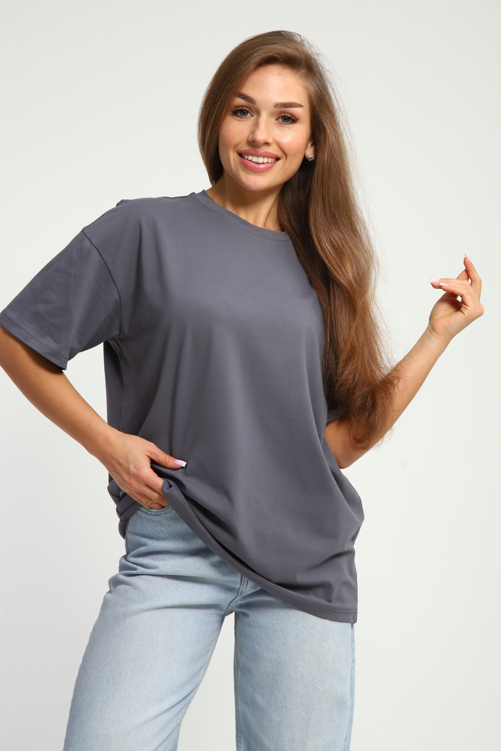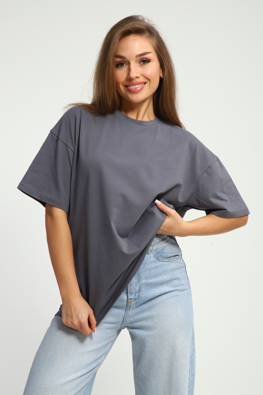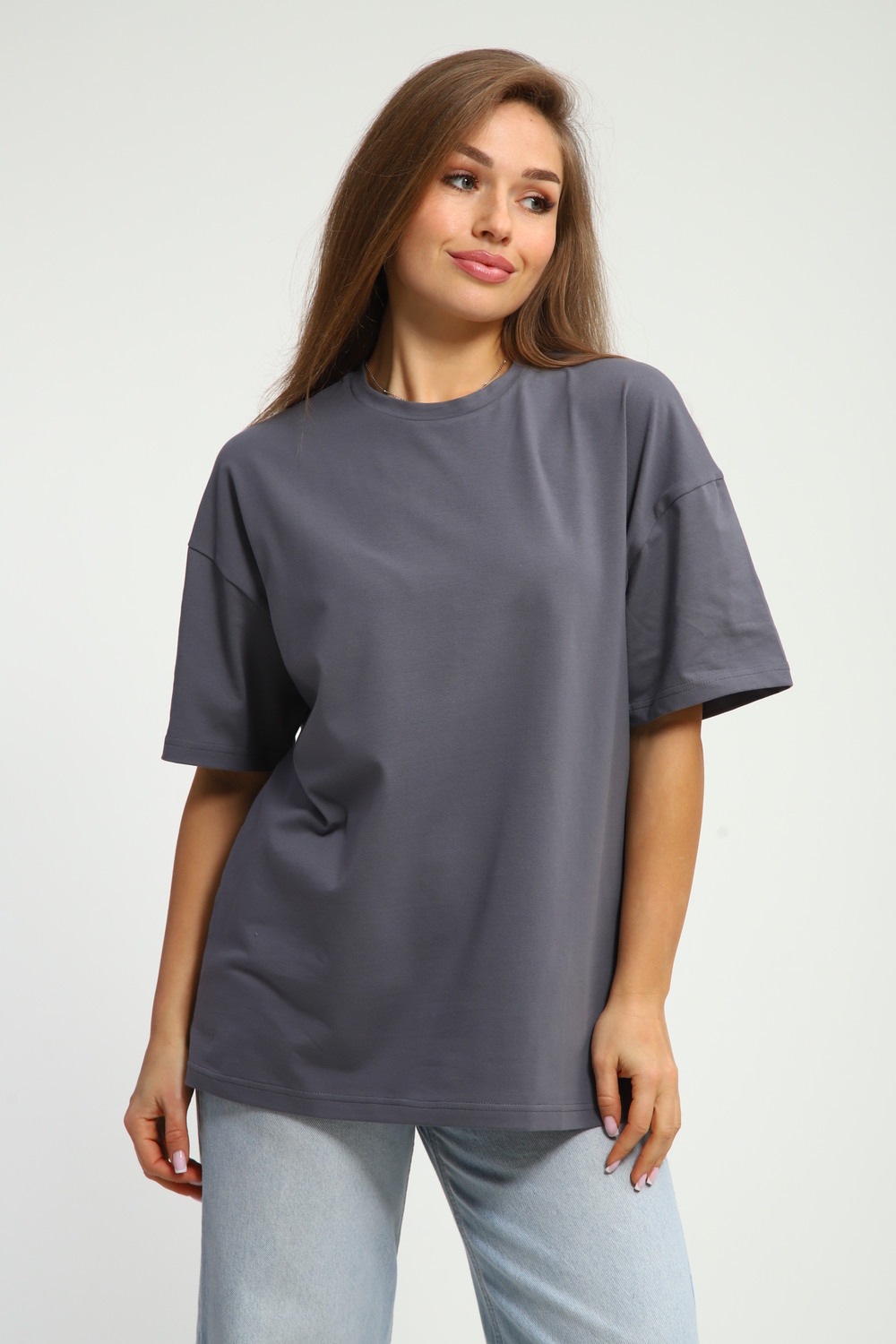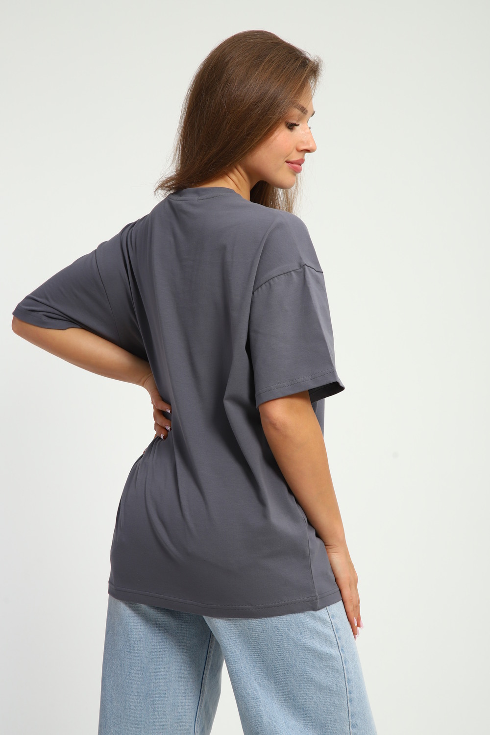 Футболка оверсайз — идеальный выбор для создания повседневного образа. Свободный крой модели обеспечивает комфорт и удобство при носке. Широкий покрой футболки позволяет чувствовать себя свободно и не скованно. Эта футболка станет незаменимой вещью в вашем гардеробе. Она подходит для создания разнообразных образов — от спортивных до более расслабленных городских. Сочетайте её с любимыми джинсами или юбкой, чтобы создать стильный и современный лук. Футболка изготовлена из качественных материалов, которые обеспечивают долговечность и сохранение первоначального вида даже после многочисленных стирок. Благодаря своему универсальному дизайну, эта футболка легко впишется в любой гардероб и станет основой для создания множества образов.