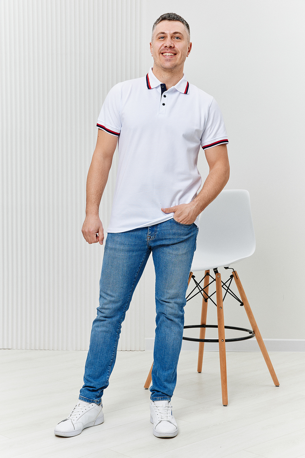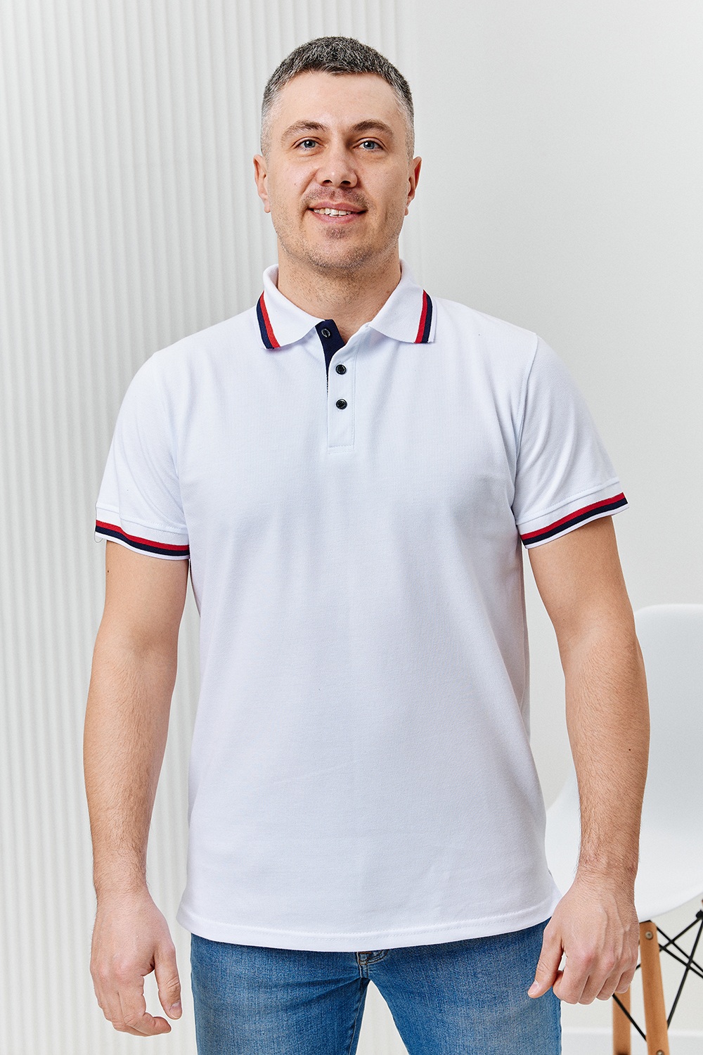 Футболка поло мужская из ткани пике качества пенье плотность 210 г/м2 100% хлопок. На поло вязаные воротник и манжеты в цвет ткани с контрастными полосками по низу, планка на 3 пуговицы контрастного цвета, по бокам разрезы. Футболка удобная и комфортная, идеально подойдет для повседневной носки, прогулок и отдыха. После стирки изделие сохраняет цвет и форму.