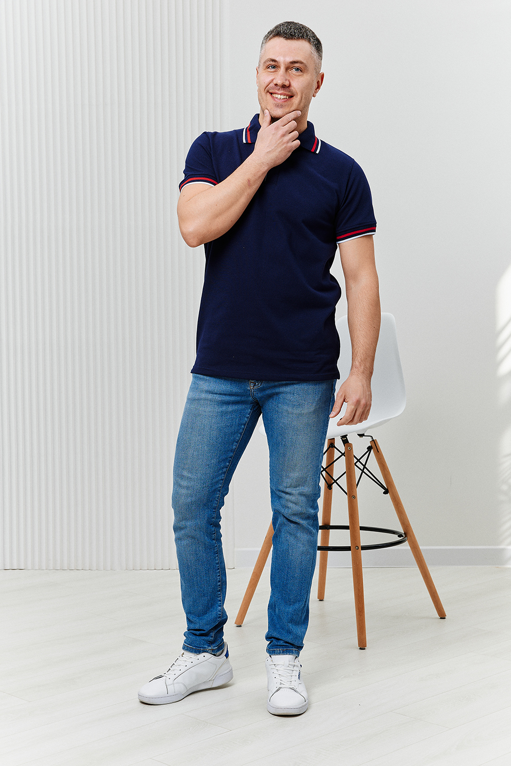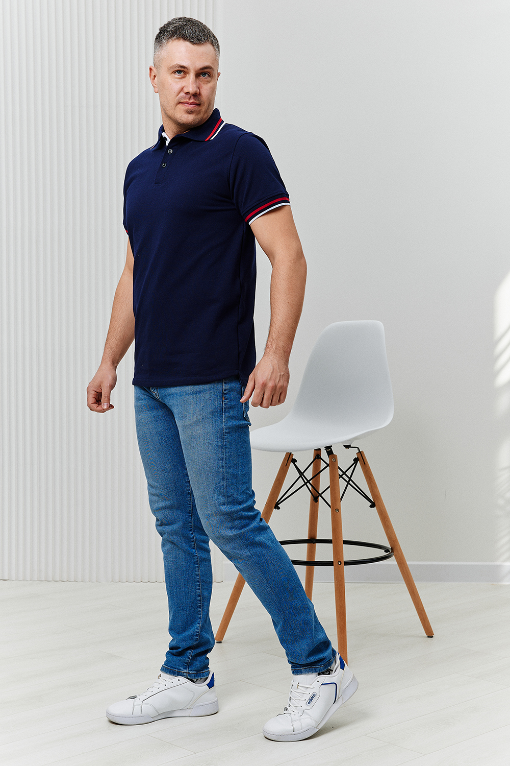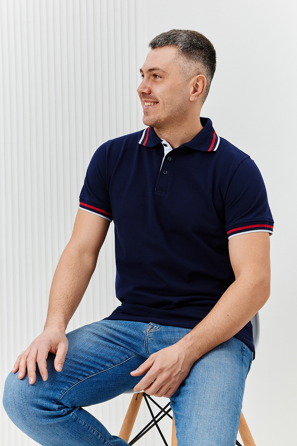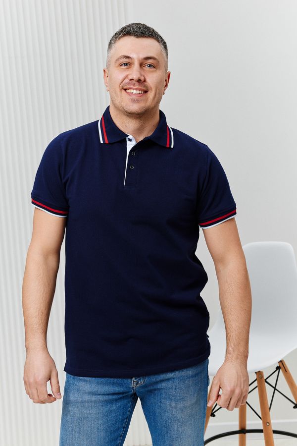 Футболка поло мужская из ткани пике качества пенье плотность 210 г/м2 100% хлопок. На поло вязаные воротник и манжеты в цвет ткани с контрастными полосками по низу, планка на 3 пуговицы контрастного цвета, по бокам разрезы. Футболка удобная и комфортная, идеально подойдет для повседневной носки, прогулок и отдыха. После стирки изделие сохраняет цвет и форму.