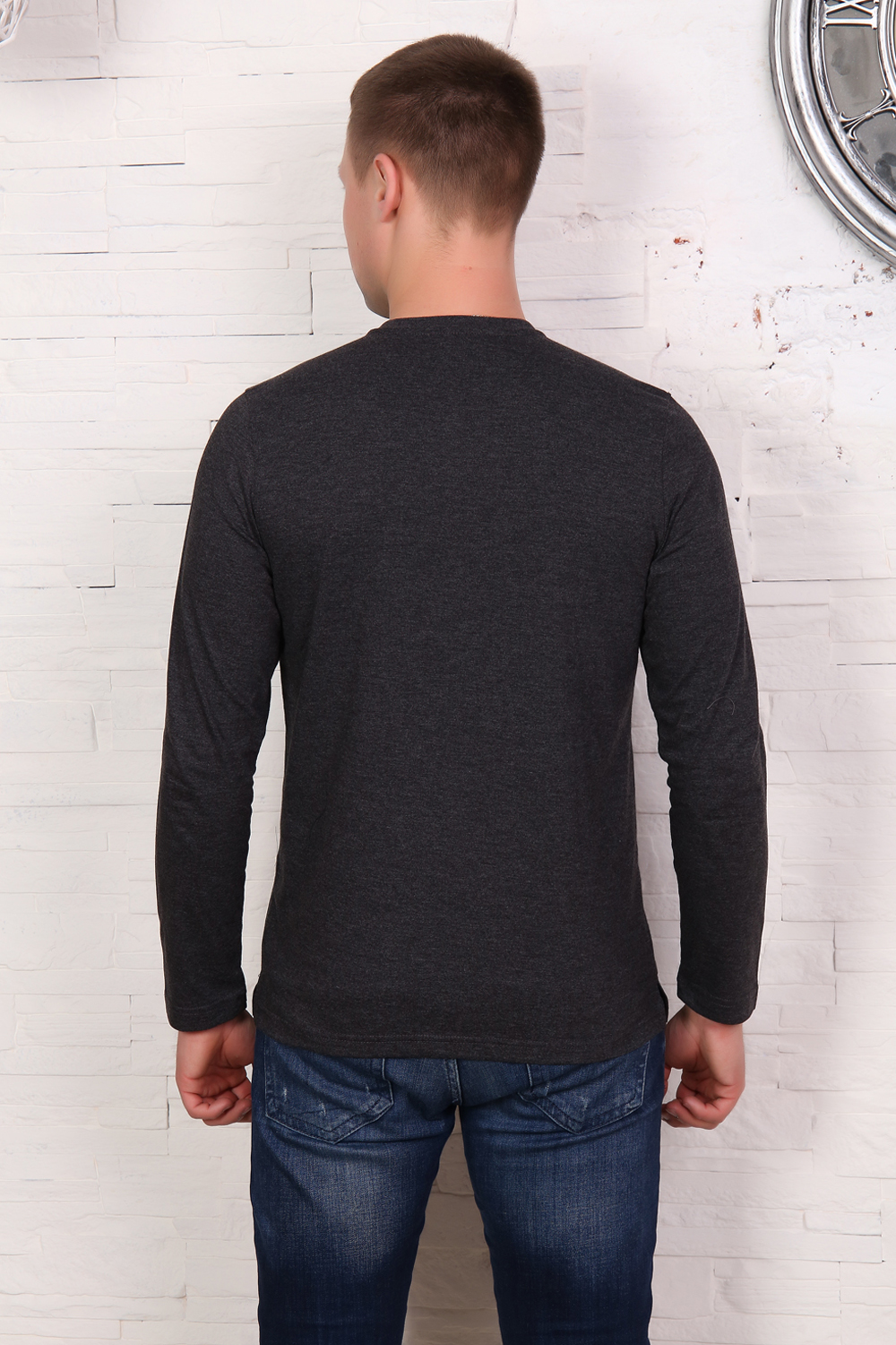 Футболка мужская полуприталенного силуэта, с длинным рукавом. Рукав притачной. Воротник на манжете, планка с пуговицами.