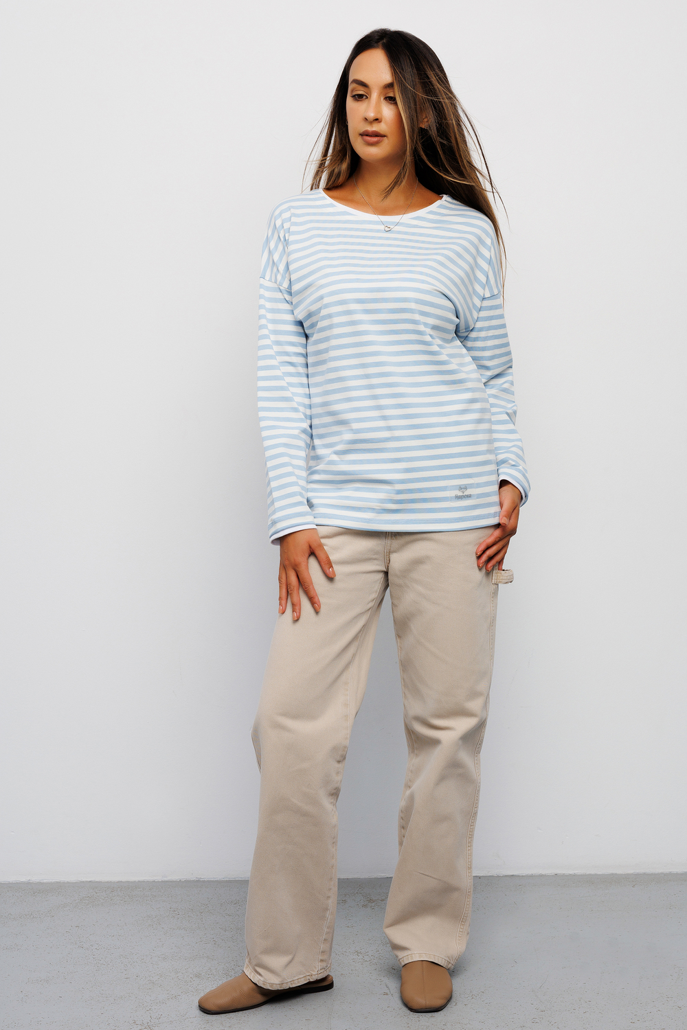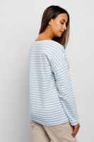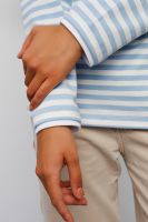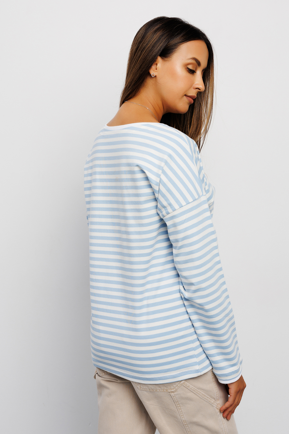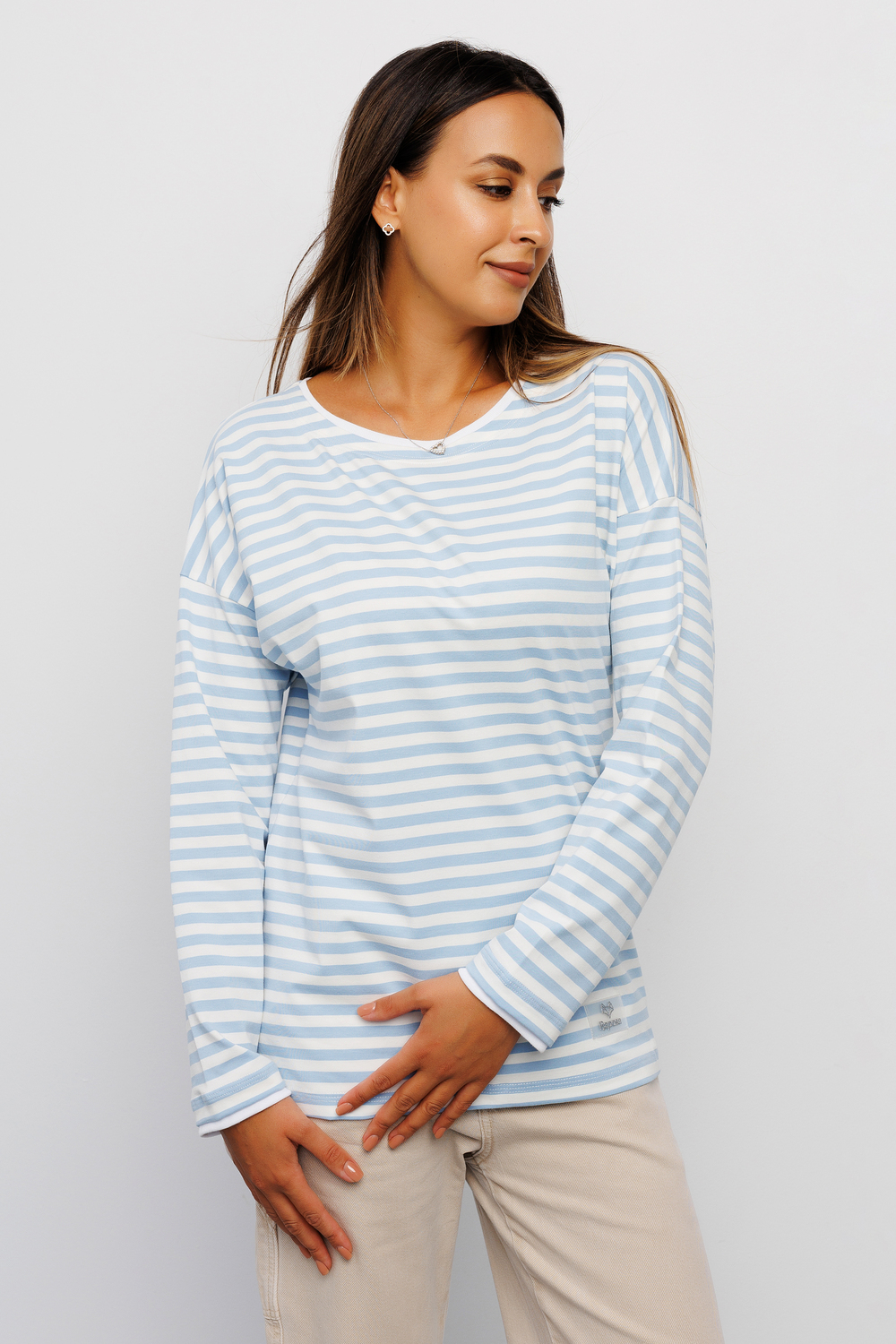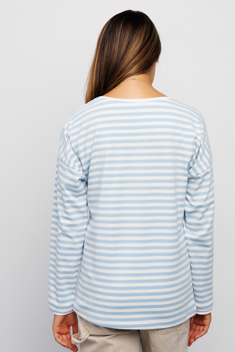 Футболка женская от бренда Raposa воплощает идеальное сочетание комфорта, качества и стиля. Красивая тельняшка выполнена из хлопка с добавлением лайкры, что обеспечивает комфортную посадку по фигуре и сохраняет форму. Эта полосатая кофта является идеальным вариантом для всех модных женщин, стремящихся выглядеть стильно и чувствовать себя при этом комфортно. Голубой полосатый принт придает трикотажной кофте нежность и женственность, прекрасно сочетаясь с любым другим оттенком. Модный свободный крой оверсайз и спущенное плечо позволяет создавать с базовым лонгсливом множество стильных образов - от повседневных до офисных. Модель легко комбинировать с любыми вещами молодежного гардероба женщины или подростка, широкий размерный ряд включает большие размеры. Эта хлопковая футболка мягкая и плотная имеет длинный рукав, что делает ее идеальной для прохладных весенних и осенних дней.