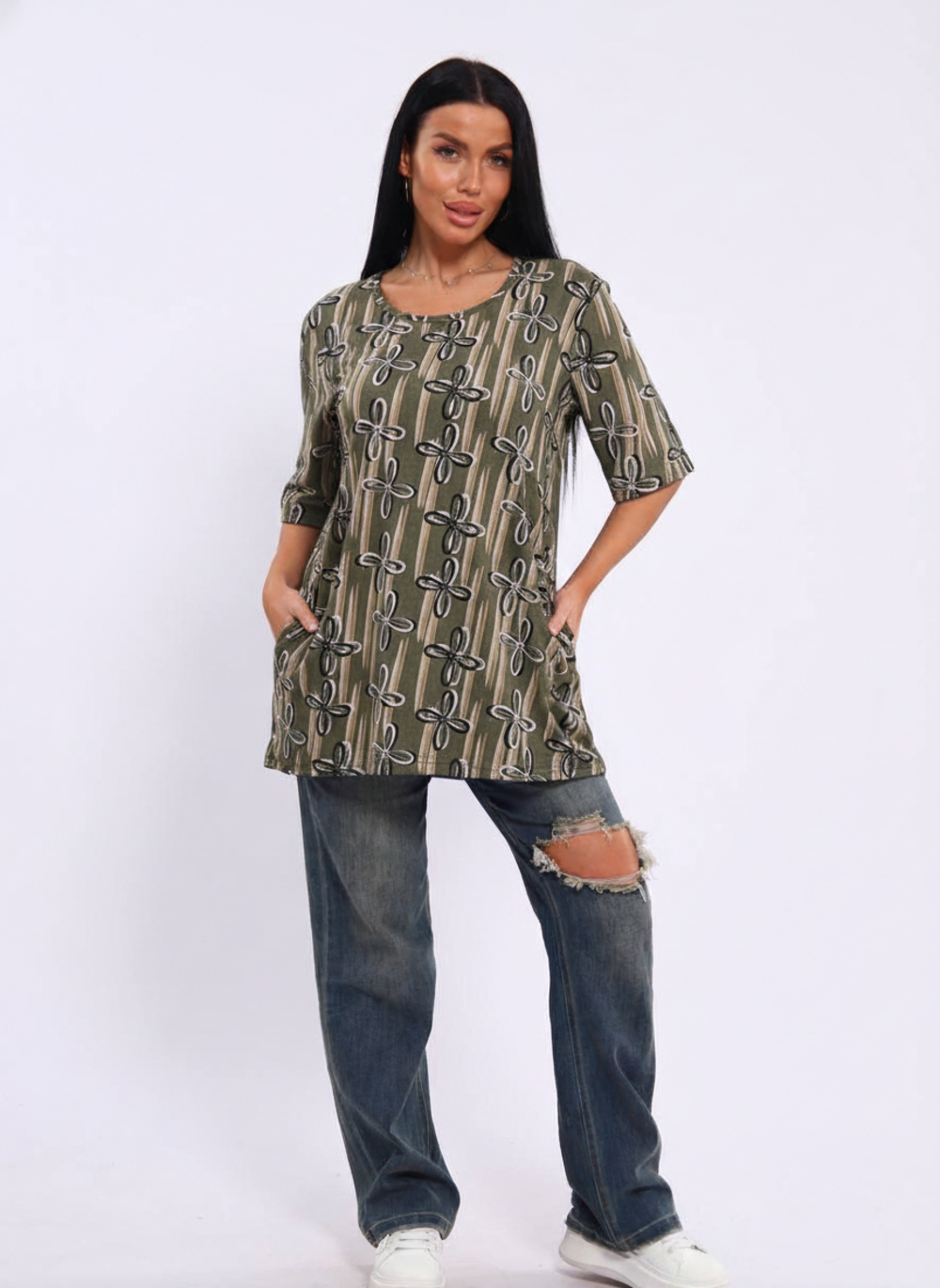 Футболка женская с карманами, модная стильная с рукавом до локтя. Красивая футболка подойдет для спортивного стиля, дополнит гардероб взрослых женщин и девушек - подростков. Свободная футболка подойдет на лето, весну и осень, идеальна для занятий спортом, фитнеса, пляжных прогулок после работы в офисе, бега, тренировок в зале, повседневной носки дома. Модель не теряет форму после стирки, обеспечит полный комфорт. Легкая трикотажная футболка станет крутым подарком на день рождения, новый год и 8 марта для любимой мамы, сестры, жены, подруги, бабушки, отлично подойдет для девушек среднего роста. Удобная футболка с карманами и рукавами 3/4 прекрасно подойдет как для домашнего отдыха, бытовых дел, так и для похода в магазин или на прогулку, или на дачу. В карманы удобно положить ключи или телефон. Отличный подарок на 8ое марта, масленицу или день матери, удобная приятная к телу вещь всегда придется по вкусу и никогда не будет лишней в гардеробе любой женщины.